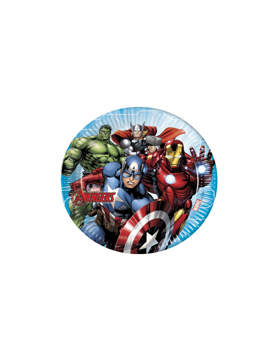 Platos Los Vengadores que incluye un pack de 6 platos de cartón de 23cm de diámetro.