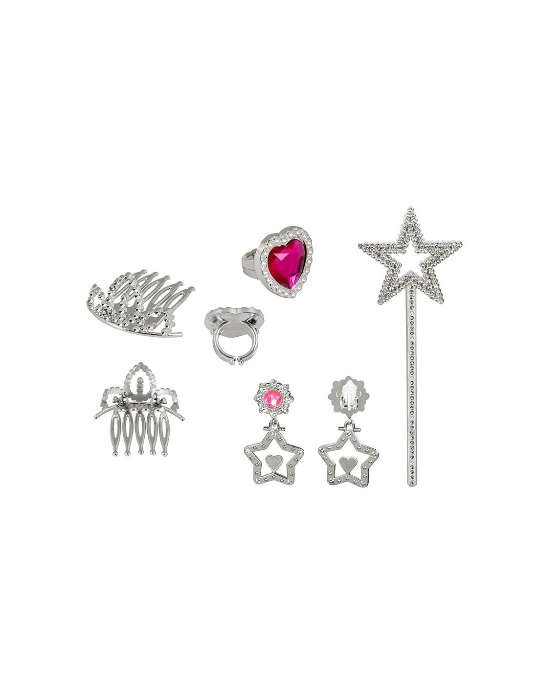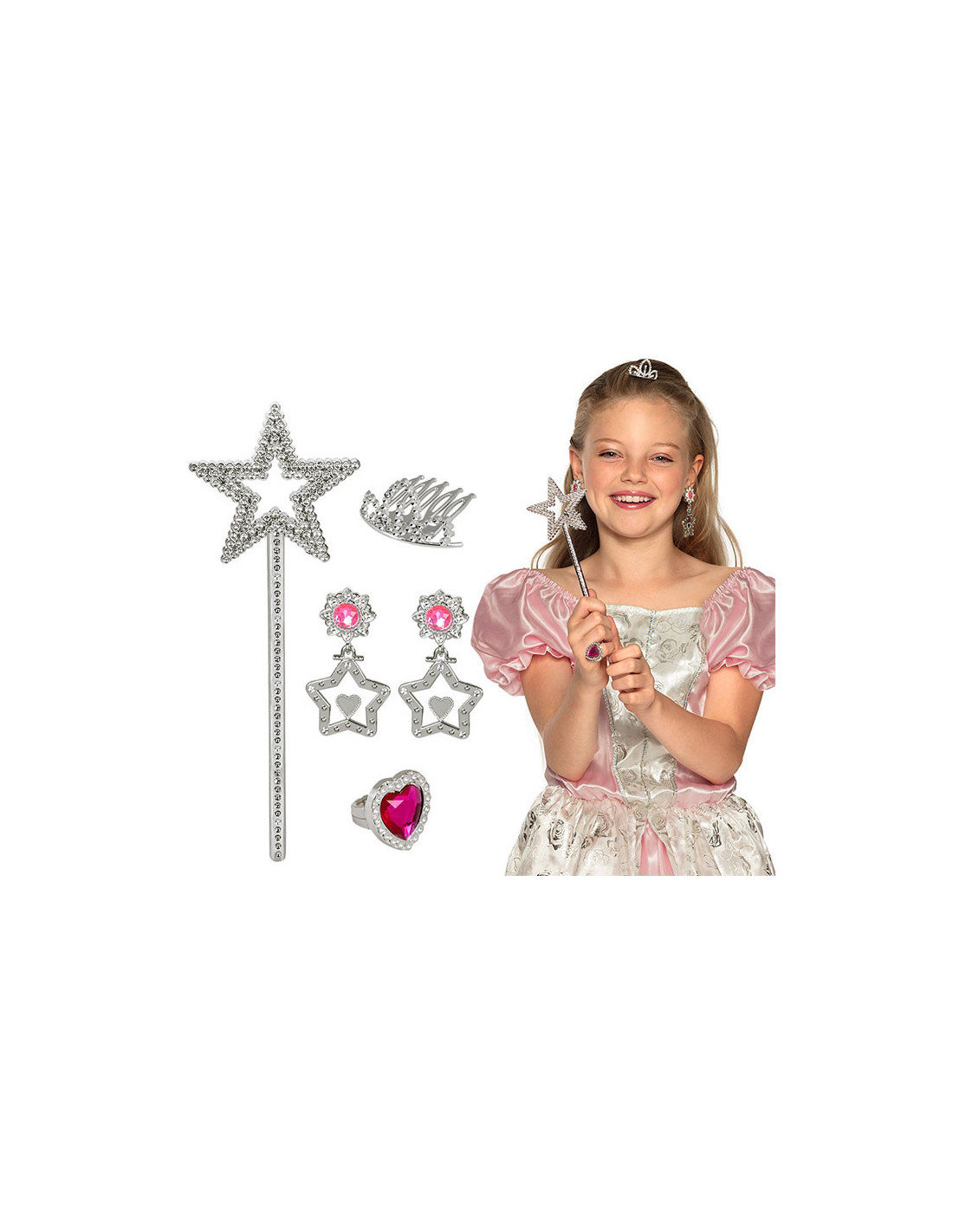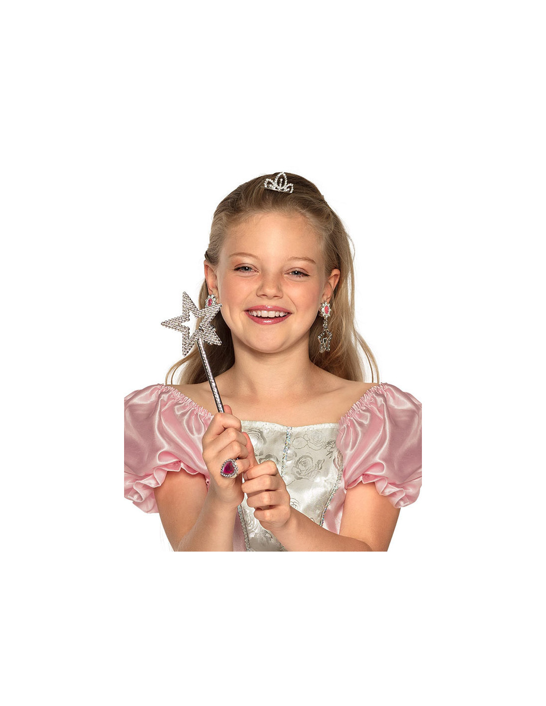Accesorios de princesa que incluye 2 pendientes, un anillo, una horquilla de coronita y varita mágica 21,5 cm.