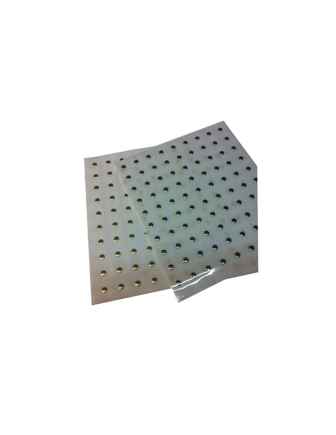 Circulos de metal de 0.7cm de diametro para pegar en la ropa con plancha. Contiene 10u.