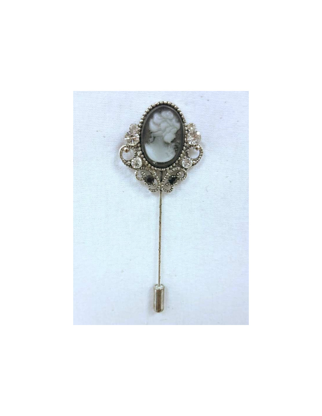 Aguja broche baturro con camafeo y piedras. Tiene unas medidas de 7,5x2,5cm.
