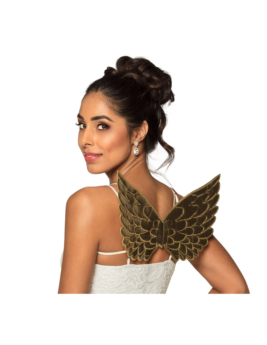 Alas de ángel doradas que incluye unas alas que miden 22 x 43 cm aproximadamente.