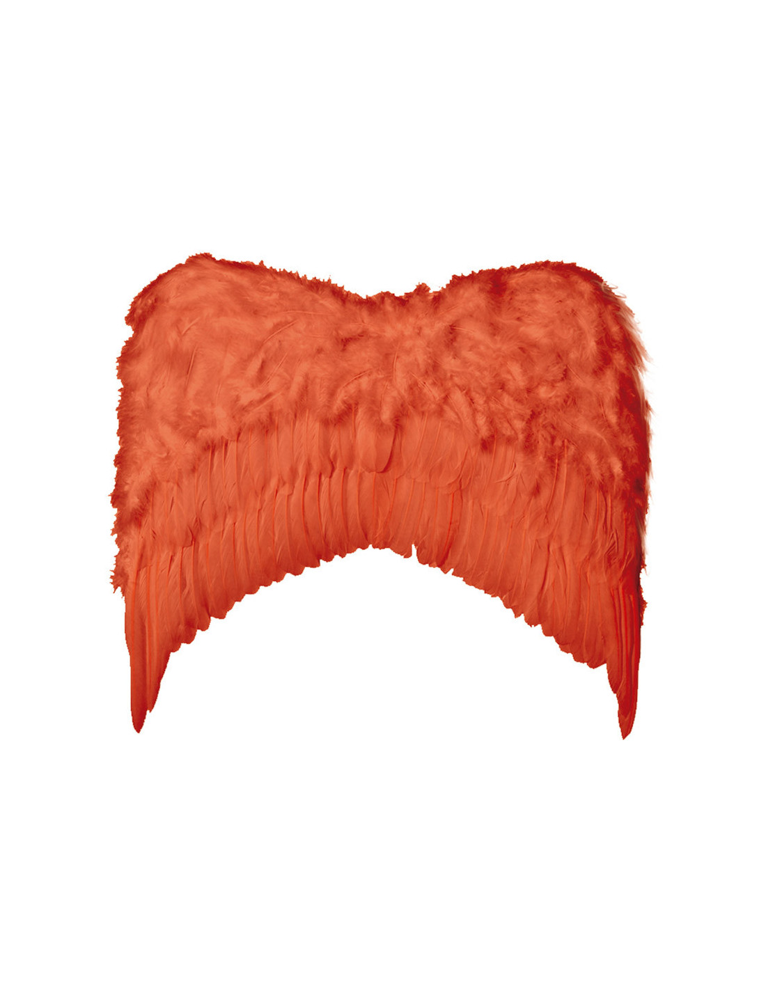 Alas de plumas grandes que tiene las plumas pegadas sobre un soporte rígido y dos anillas de tela para sujetar al cuerpo. Las alas tienen unas medidas de 80 x 75cm y están disponibles en varios colores.