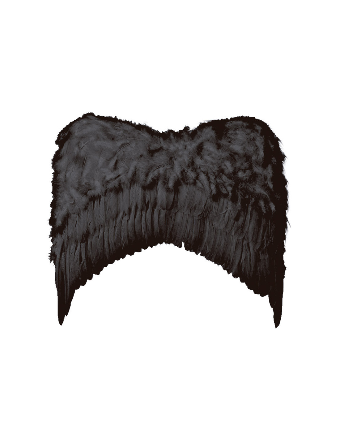Alas de plumas grandes que tiene las plumas pegadas sobre un soporte rígido y dos anillas de tela para sujetar al cuerpo. Las alas tienen unas medidas de 80 x 75cm y están disponibles en varios colores.