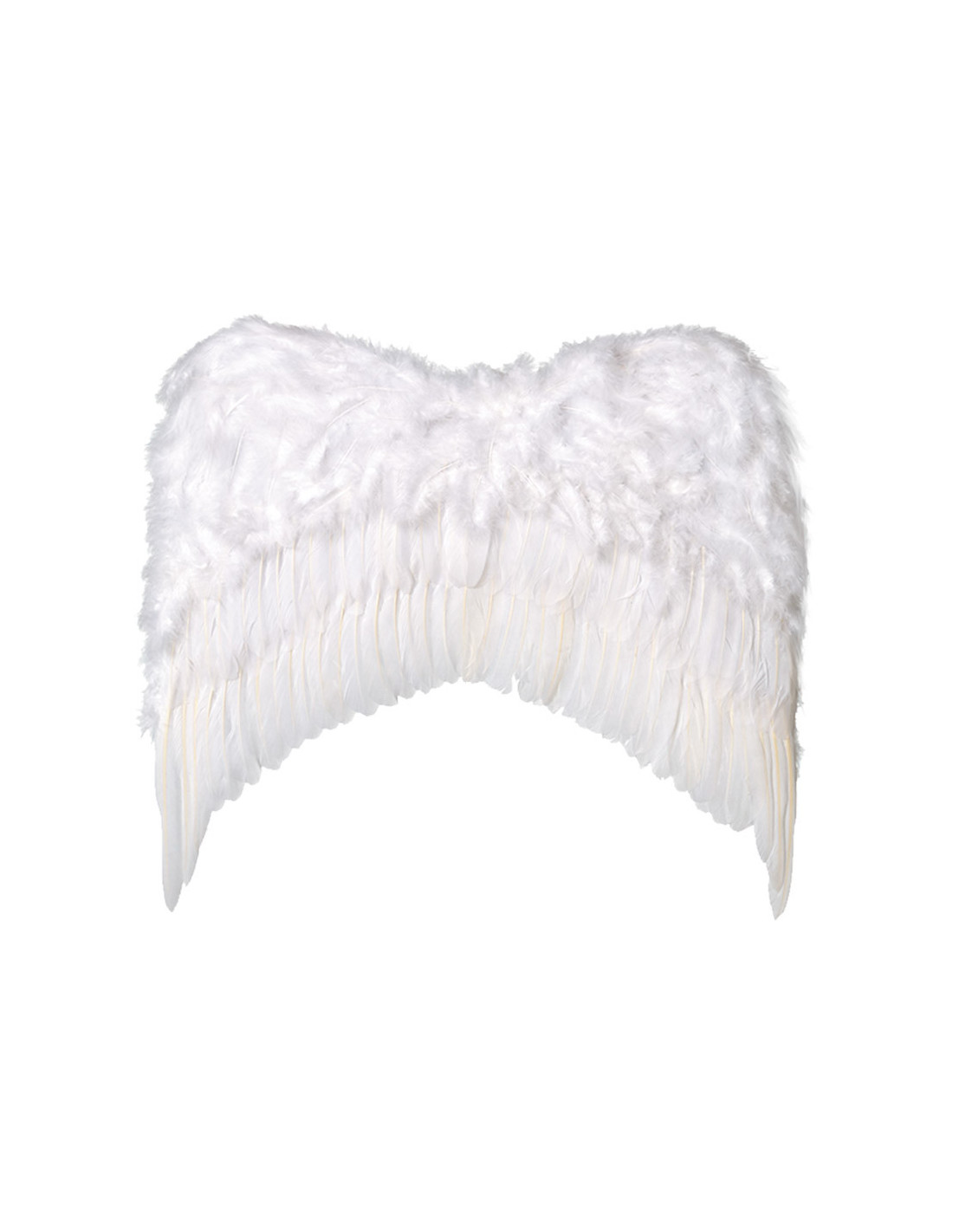 Alas de plumas grandes que tiene las plumas pegadas sobre un soporte rígido y dos anillas de tela para sujetar al cuerpo. Las alas tienen unas medidas de 80 x 75cm y están disponibles en varios colores.