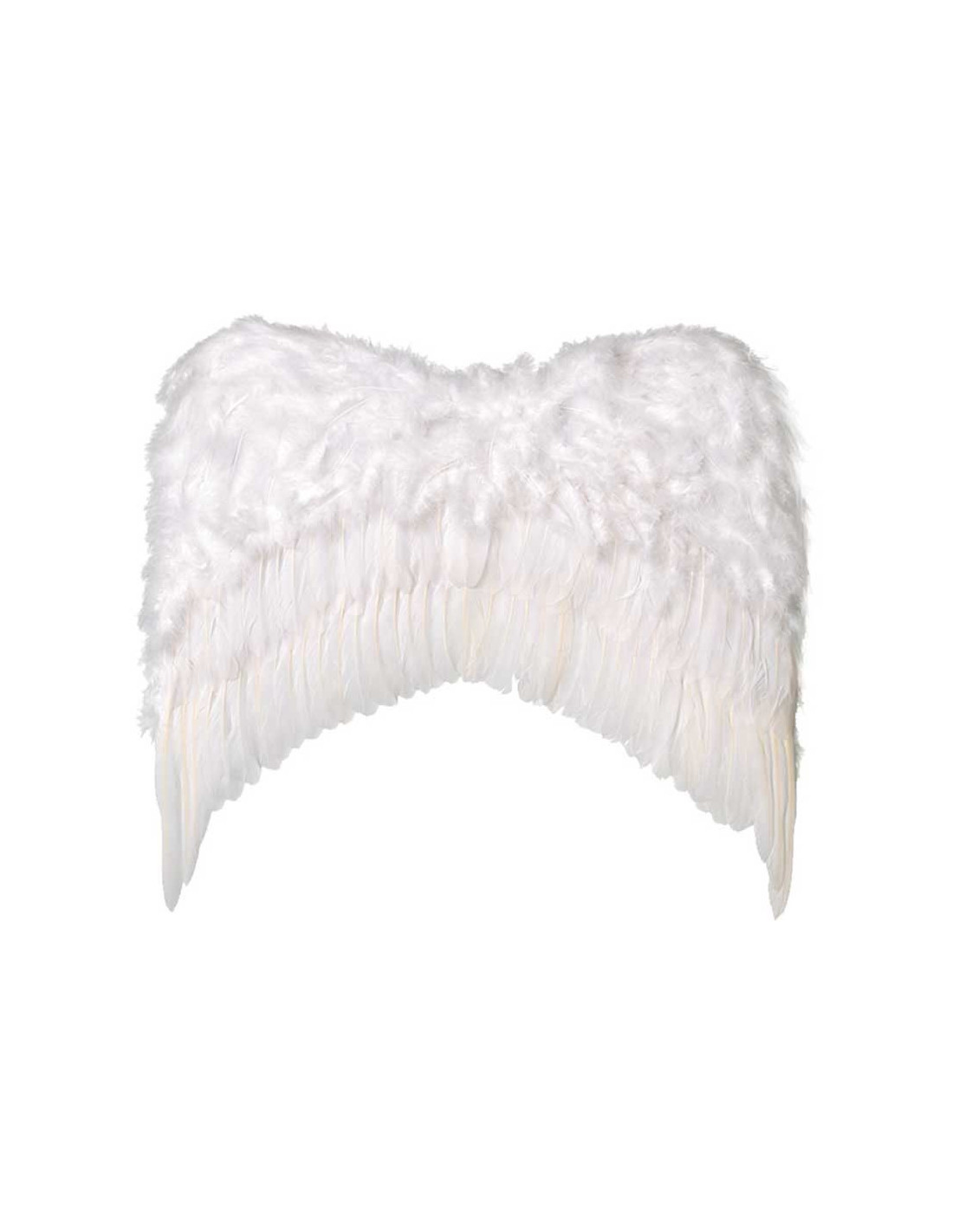Complementa tu disfraz de mensajero/a de Dios con estas alas de ángel. Incluye unas hermosas alas de ángel, fabricadas con plumas blancas adheridas a un soporte rígido, con dimensiones de 30x39cm y con dos anillas de tela para sujetar al cuerpo al más puro estilo mochila.