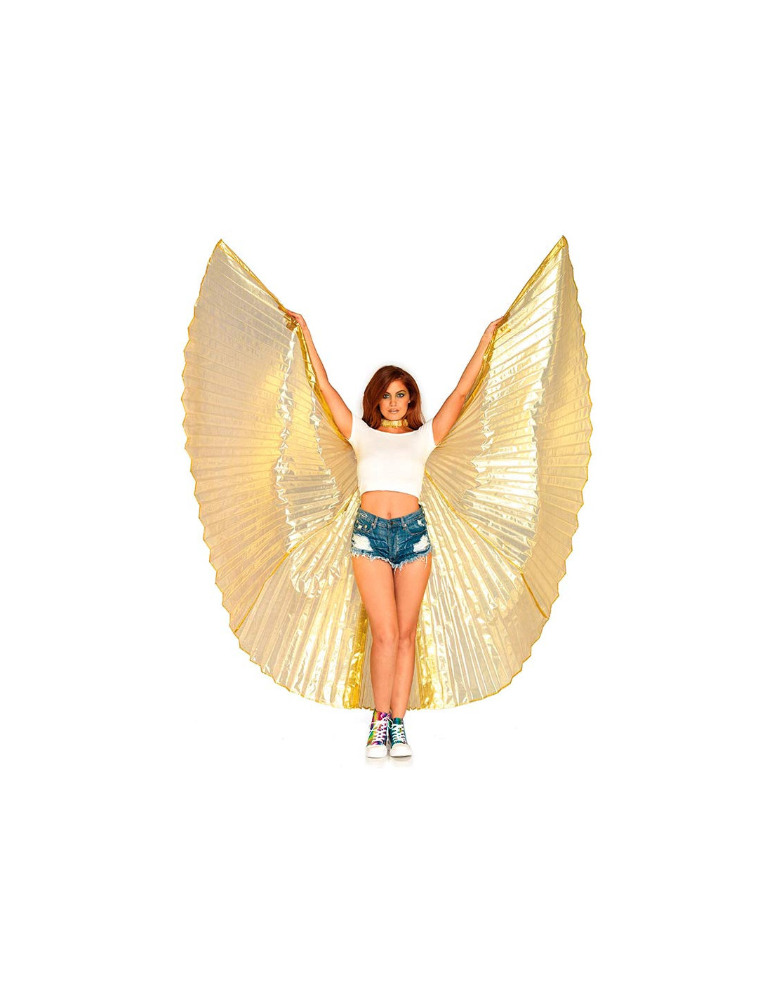 Vistosas alas gigantes plisadas con brillo nacarado ideales para desfiles y cabalgatas. Extiende las alas de Isis y deja a todos boquiabiertos.
