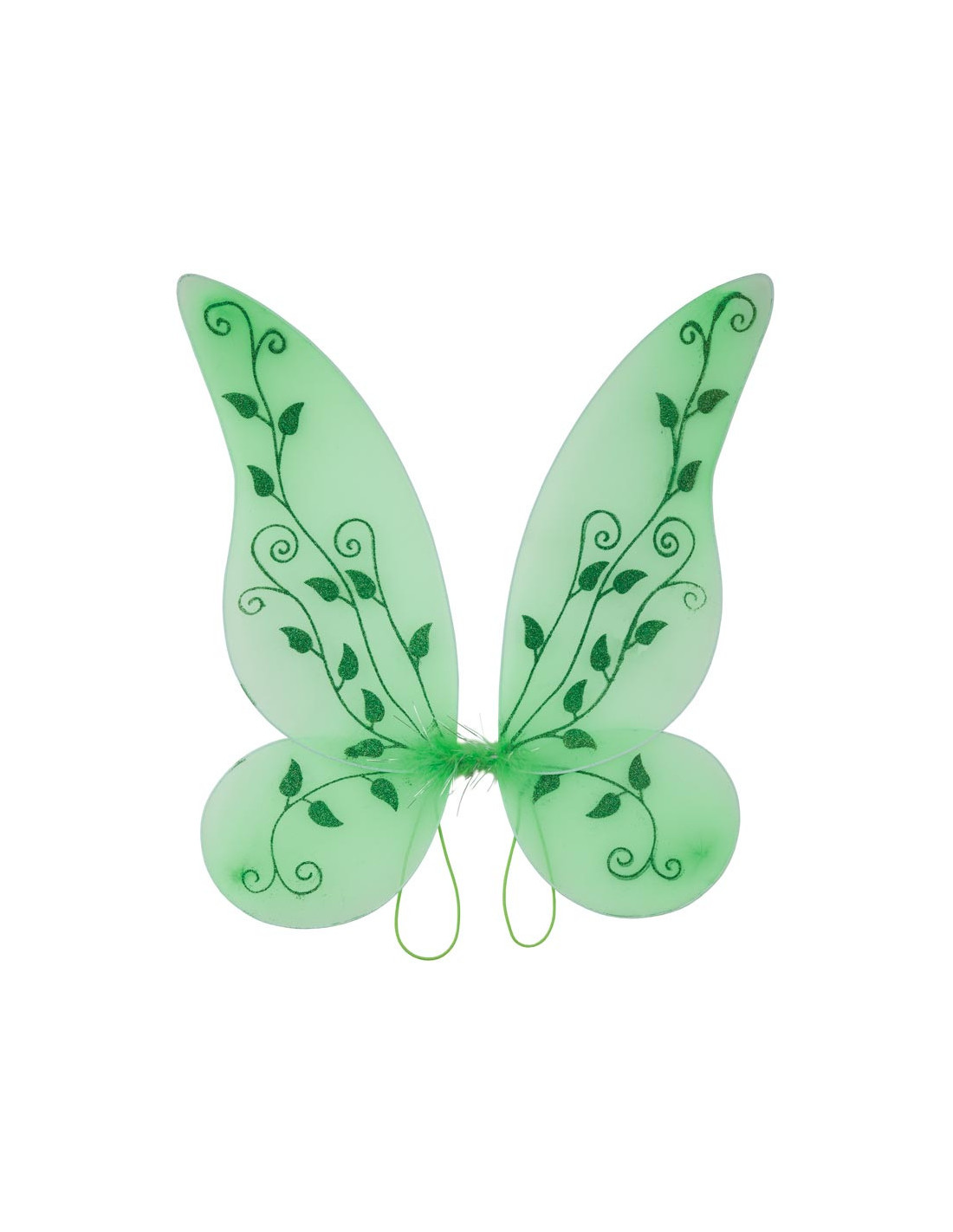 Completa tu disfraz de hada o ninfa con estas preciosas alas hada del bosque en color verde y detalles en purpurina. Tienen un tamaño de 39x50cm.
