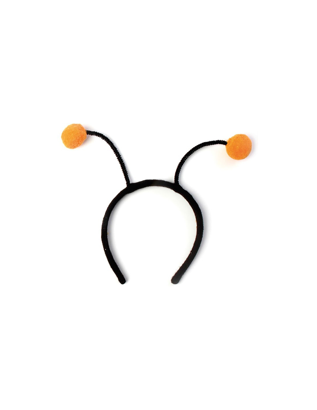 Antenas de abejita negras con dos pompones amarillos en los extremos.