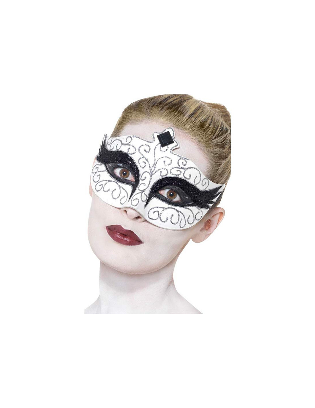 Antifaz cisne negro en color blanco y negro con lazo para atar.