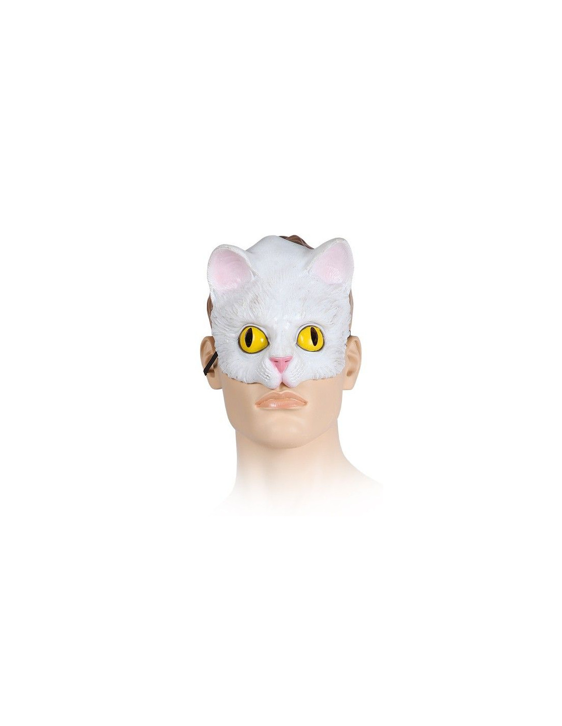 Me pareció ver a un lindo gatito... Transfórmate en un fiero felino con este antifaz de gato blanco. Está hecho de goma.