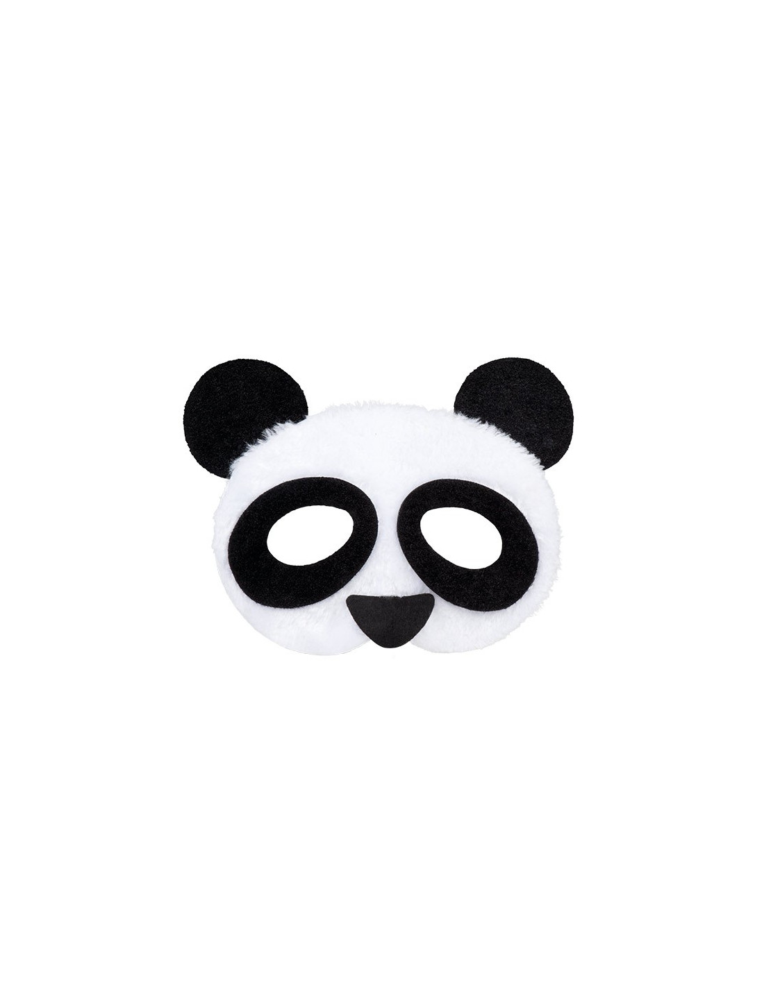 Antifaz oso panda de plástico forrado de pelito blanco y negro.