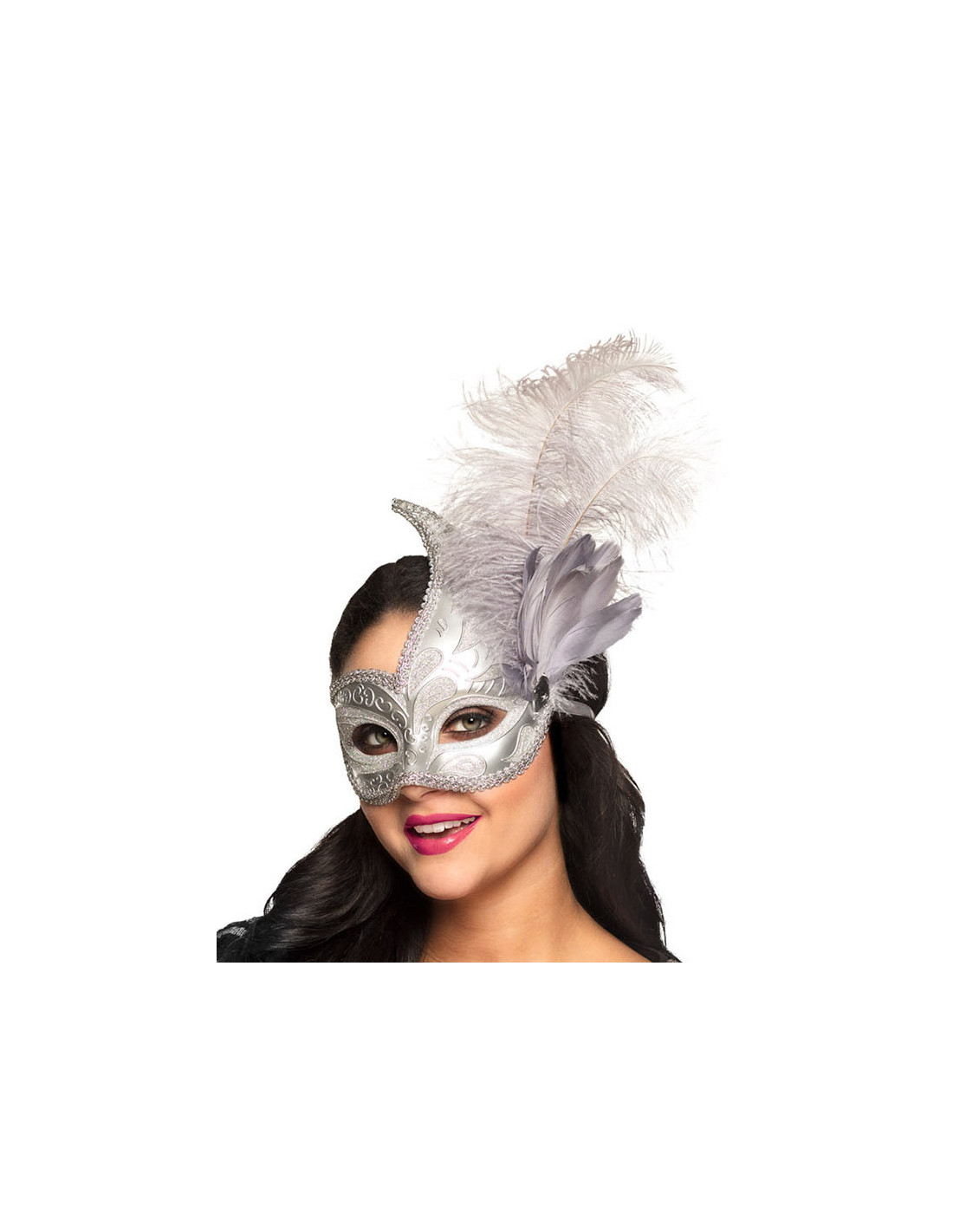 Antifaz veneciano cresta metalizado detalle plata
