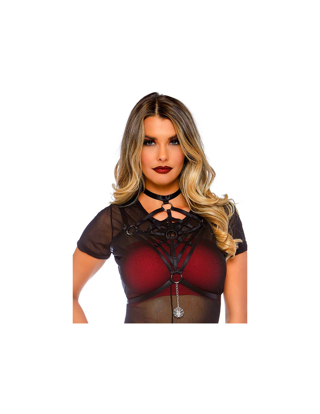 Este atrevido arnés gótico es ideal para tu oscuro look de Halloween o Fiestas temáticas.