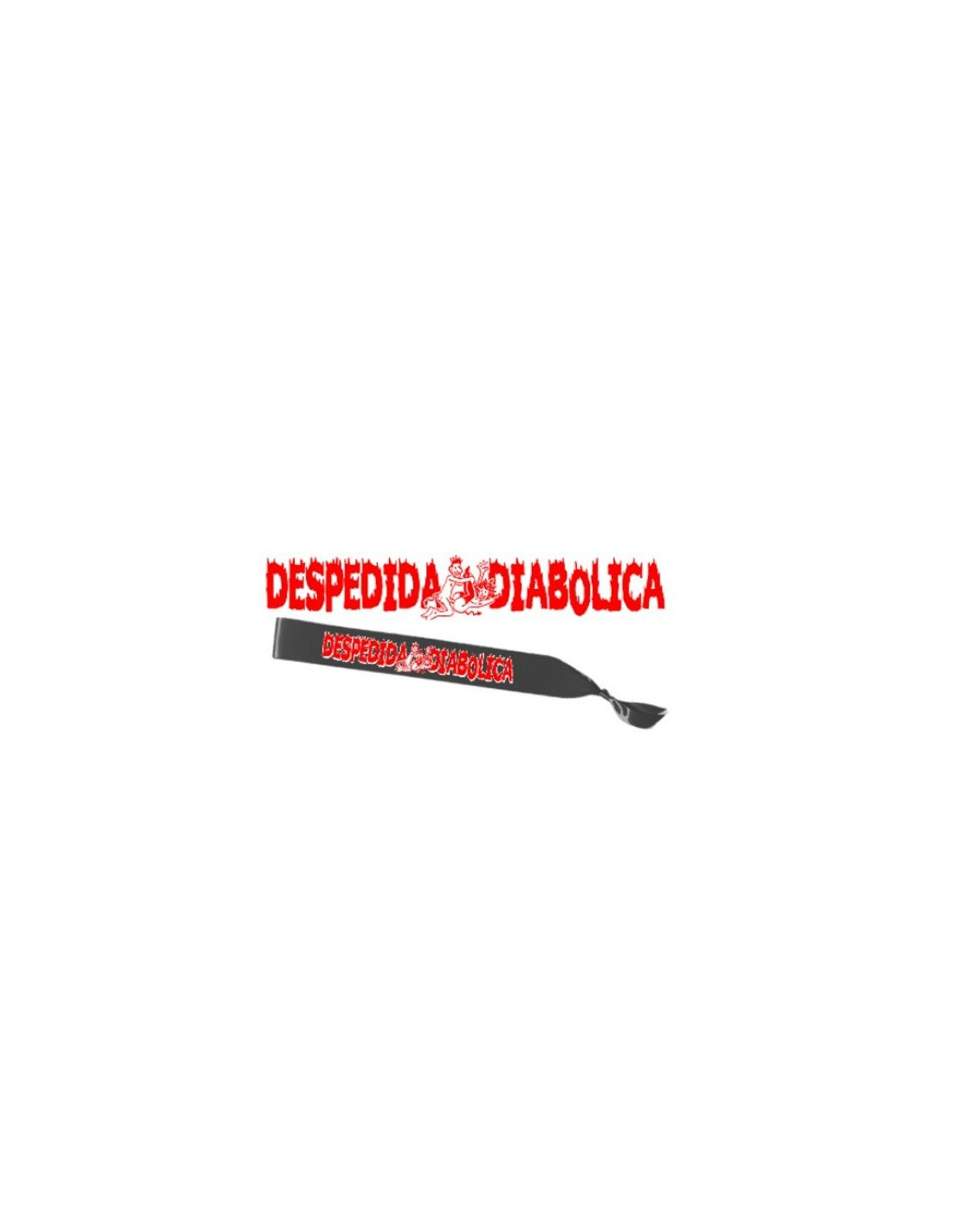 Banda de raso de 200x7cm en colores surtidos, estampadas con el texto "despedida diabolica".