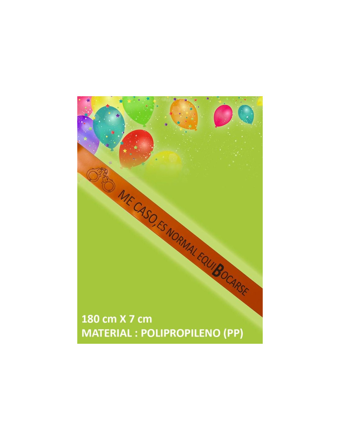 Banda para despedida de soltera "Me caso, es normal equiBocarse". Incluye una original y divertida banda para despedida de soltera fabricada de polipropipleno con la frase "me caso, es normal equibocarse" grabada.