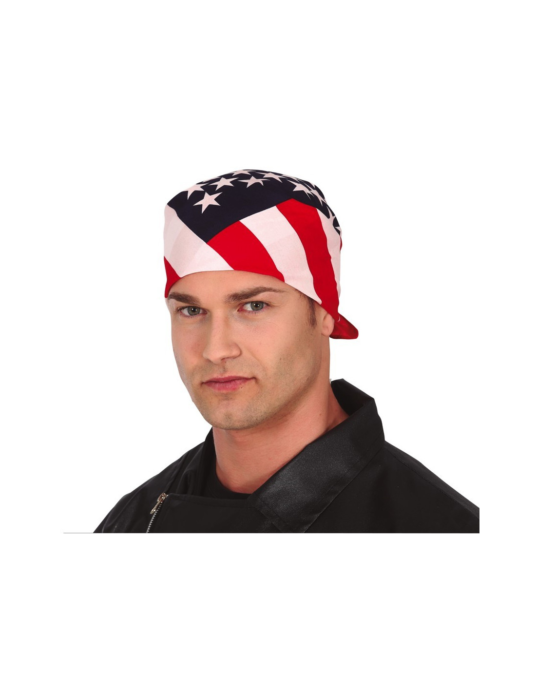 Bandana americana que incluye un pañuelo para la cabeza de strech 56x56cm con la bandera de Estados Unidos.