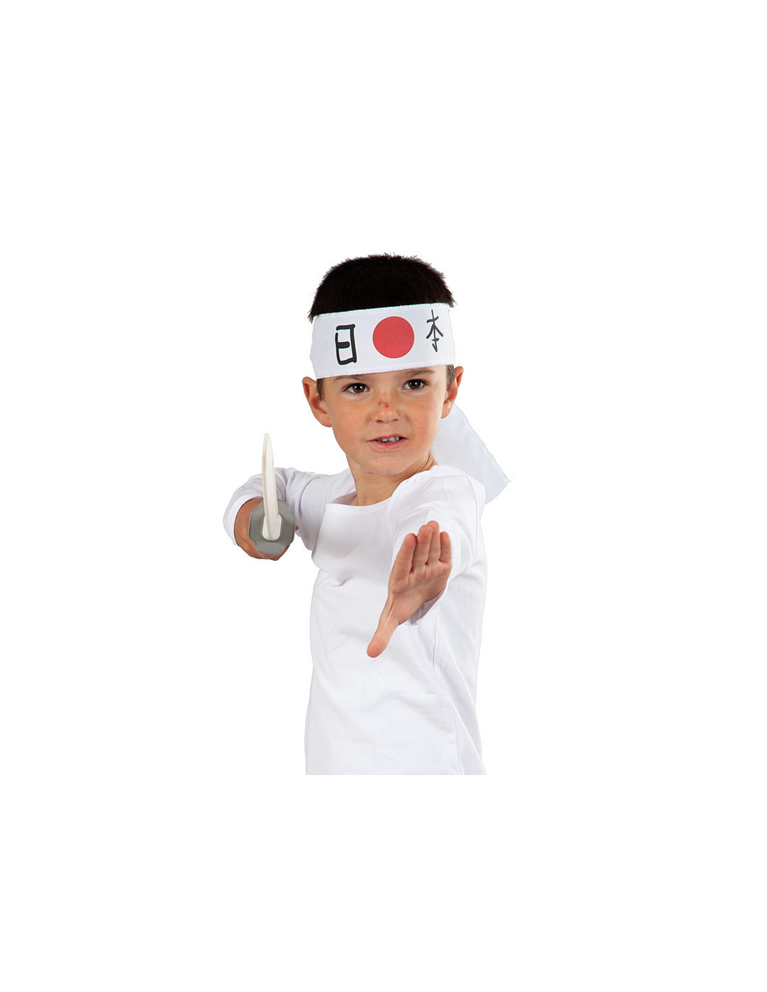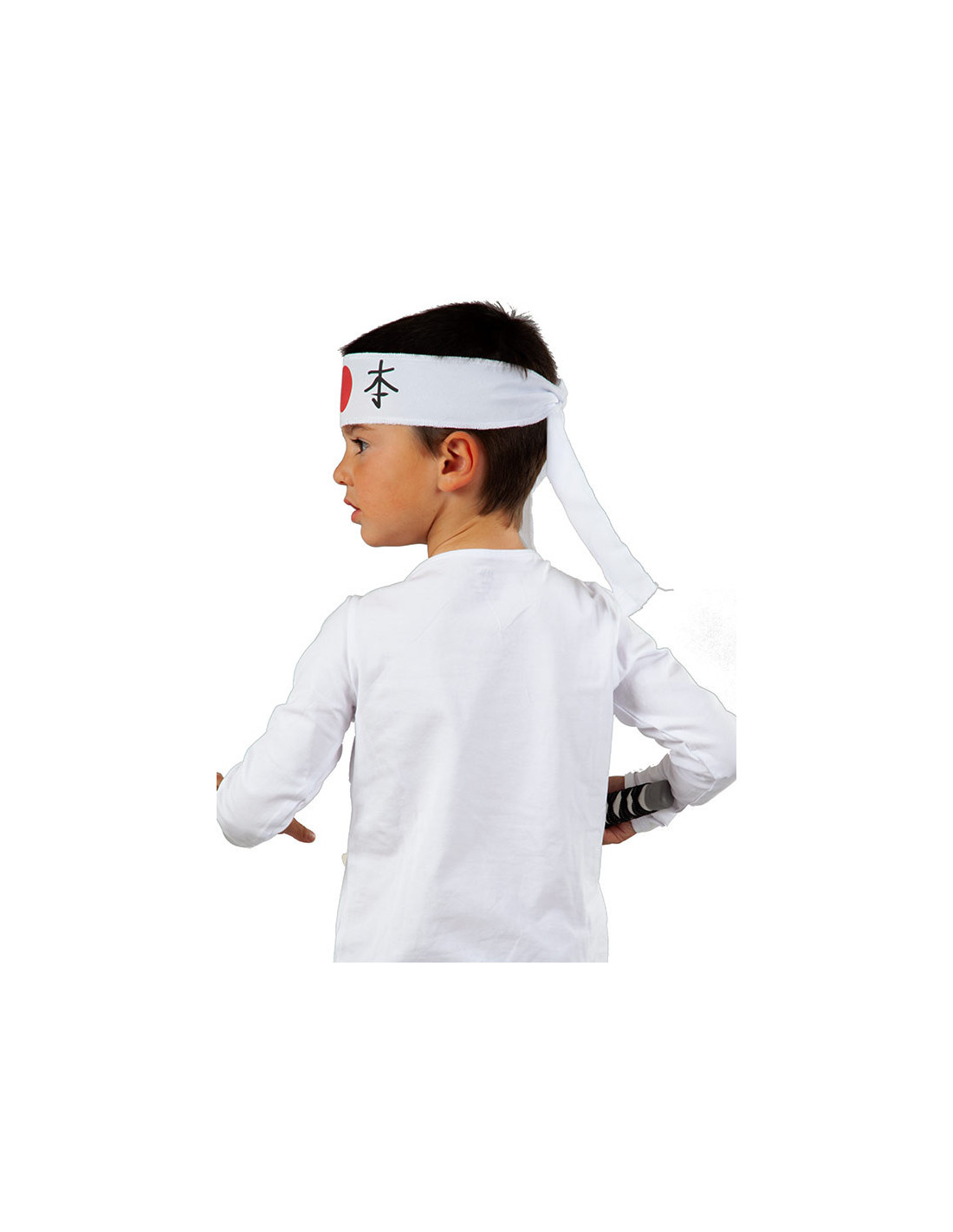La bandana es ed tela y se anuda a la cabeza. Tiene impreso en la parte centra unos kanji (símbolos japoneses) que significa 'Japón'.