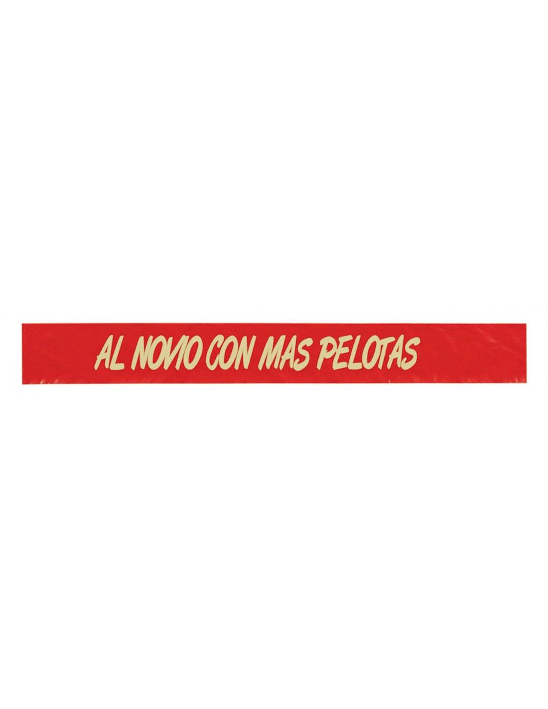 Banda para despedidas en tejido de raso de 9 x 200 cm con el texto "al novio con mas pelotas" grabado en oro metalizado