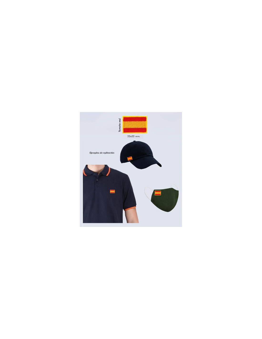 Bandera de España bordada para personalizar tus prendas textiles con la bandera de tu país. Personaliza tus mascarillas, polos, gorras y todo lo que se te ocurra.