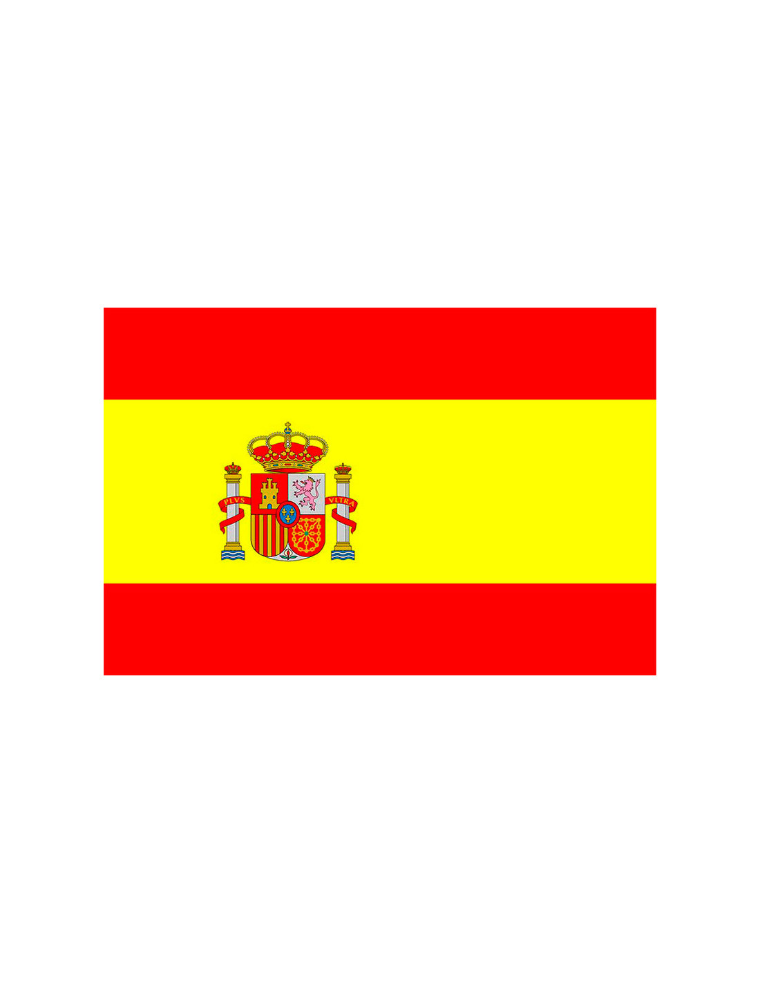 Bandera España con escudo con un tamaño de 88x60cm aproximadamente.
