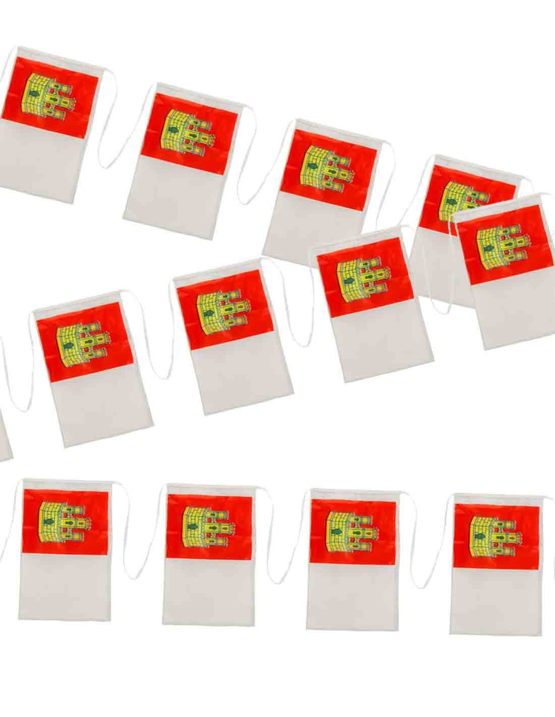 Bandera plástico Castilla La Mancha para decorar en fiestas. Las banderas tienen un formato de 20x30 y una longitud de 50 metros