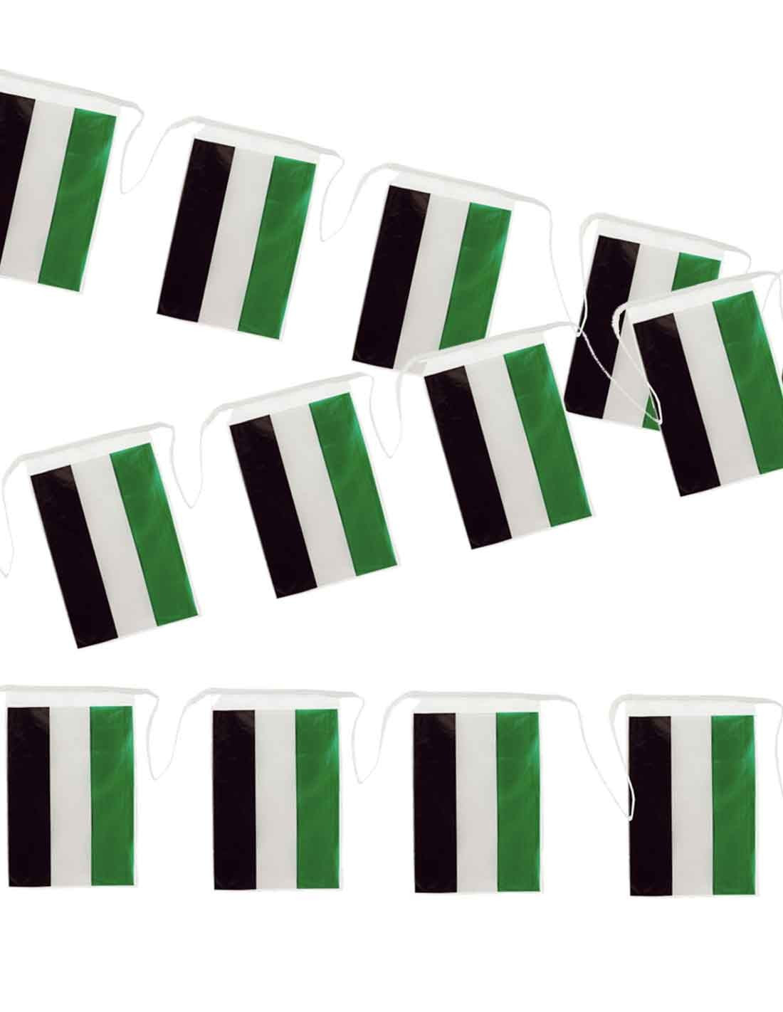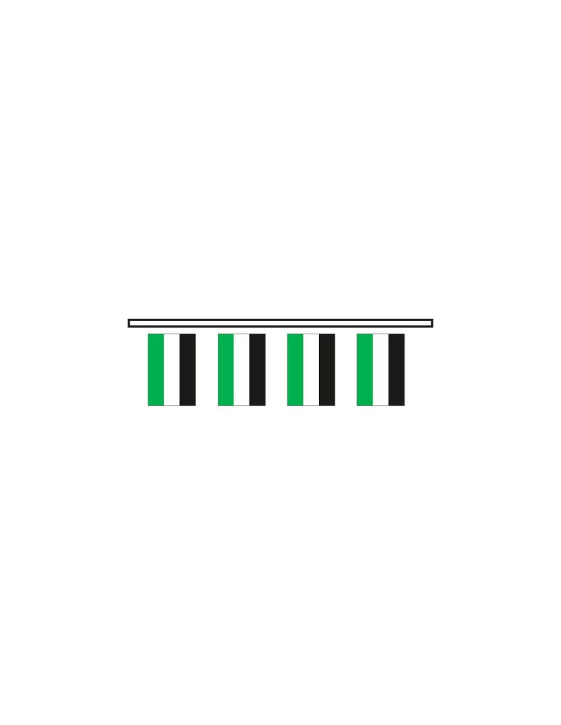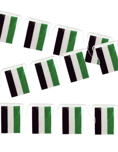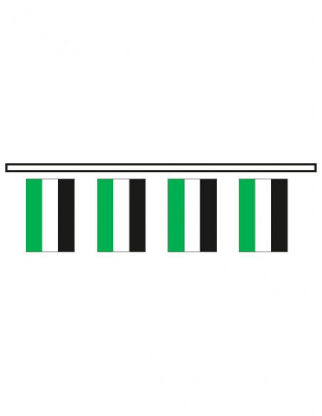 Bandera plástico cosidas sobre una cinta de Extremadura ideal para colocar en las calles y locales en las fiestas o eventos. Las banderas tienen un formato de 20x30 y una longitud de 50 metros también podemos fabricarlas con los logotipos de su localidad, consulte precio.