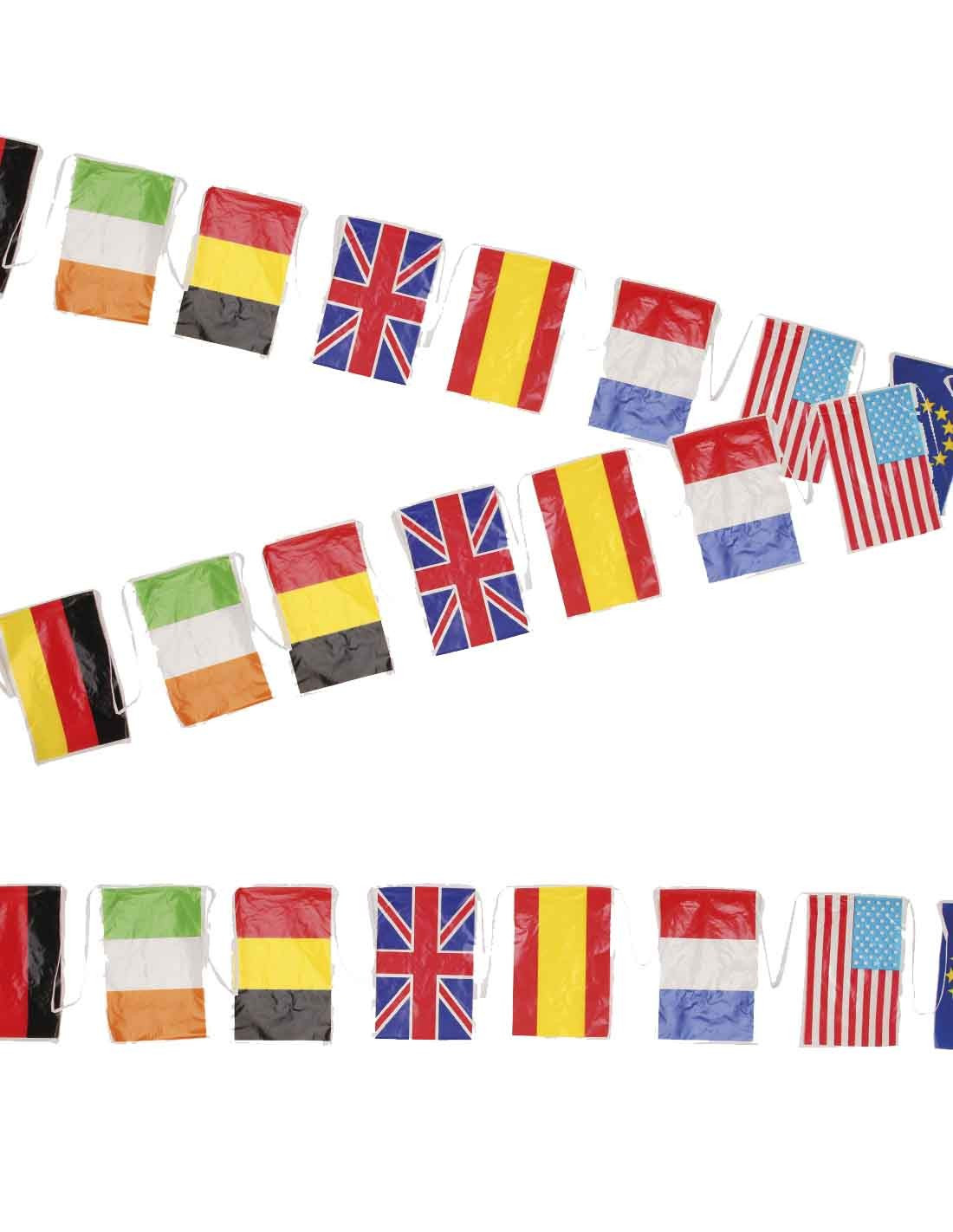 Bandera de plástico internacional que contiene un paquete de 50 metros de largo y unos banderines de 20x30.