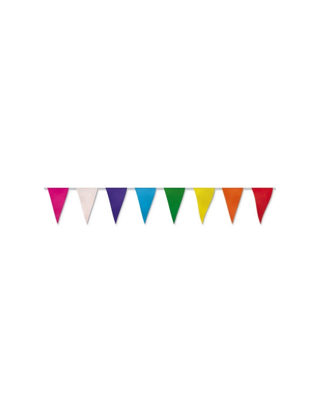 gallardetes para decoracion de calles y locales en las fiestas de los pueblos o celebracion de eventos. Longitud 50m y el banderin 20X40cm. surtidos de colores.