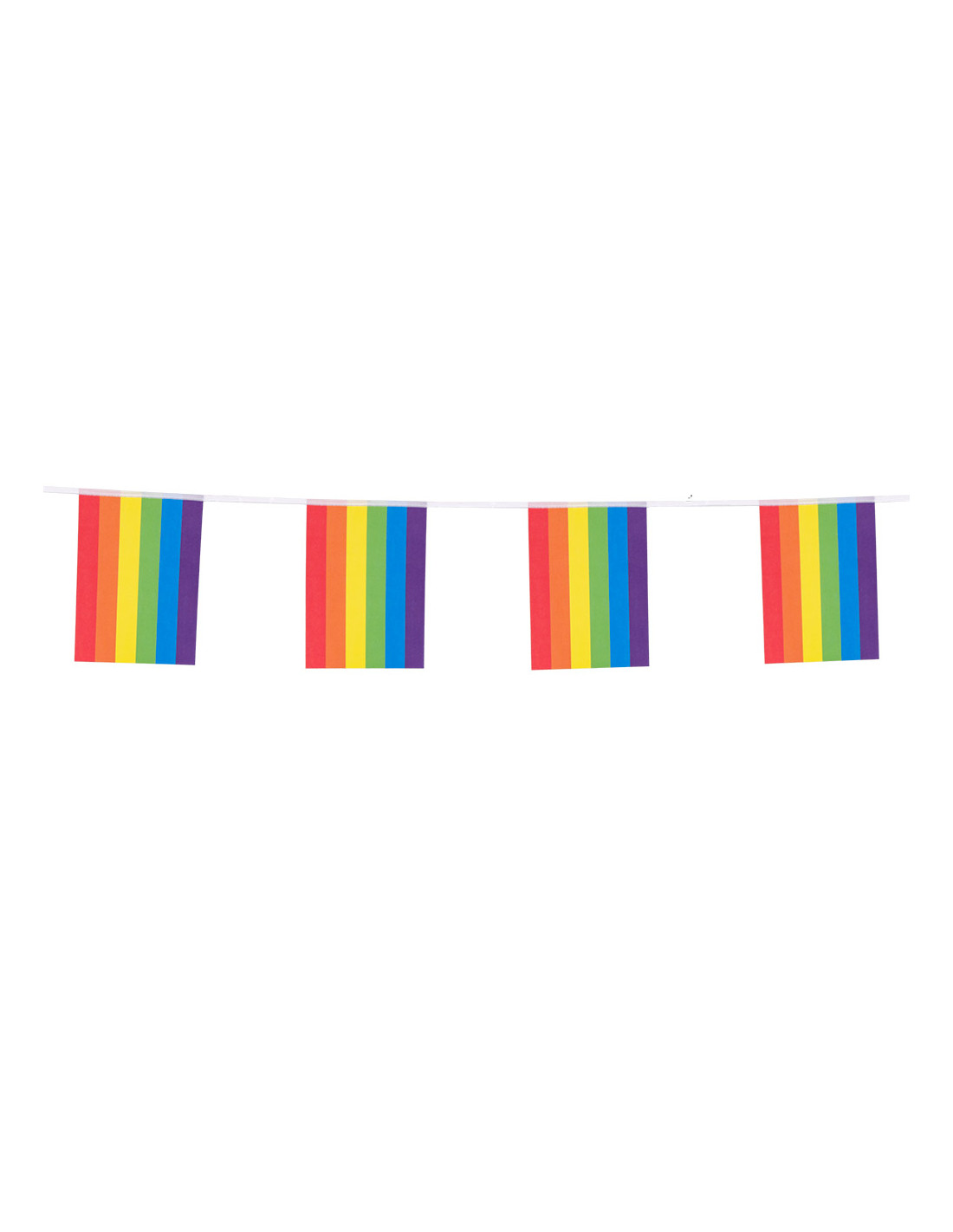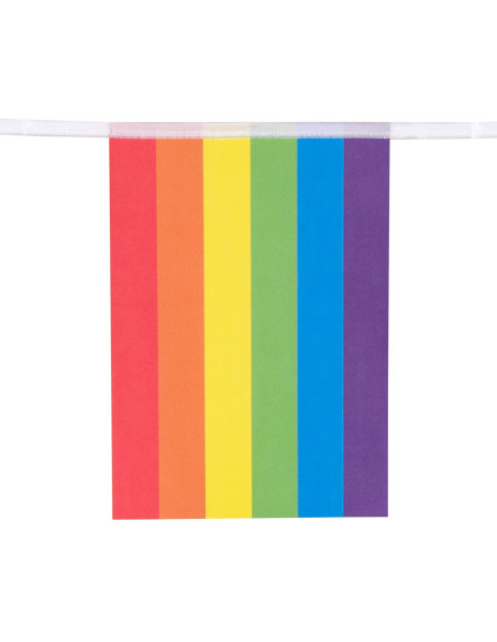 Decora tu fiesta con estos coloridos banderines arcoíris. Ideales para fiestas o eventos de celebración del orgullo gay.