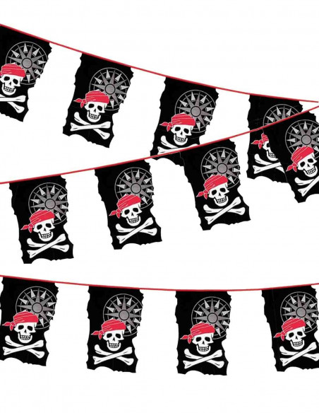 Banderines piratas con una longitud de 10 metros y compuesto por 18 banderines de 35x23cm.