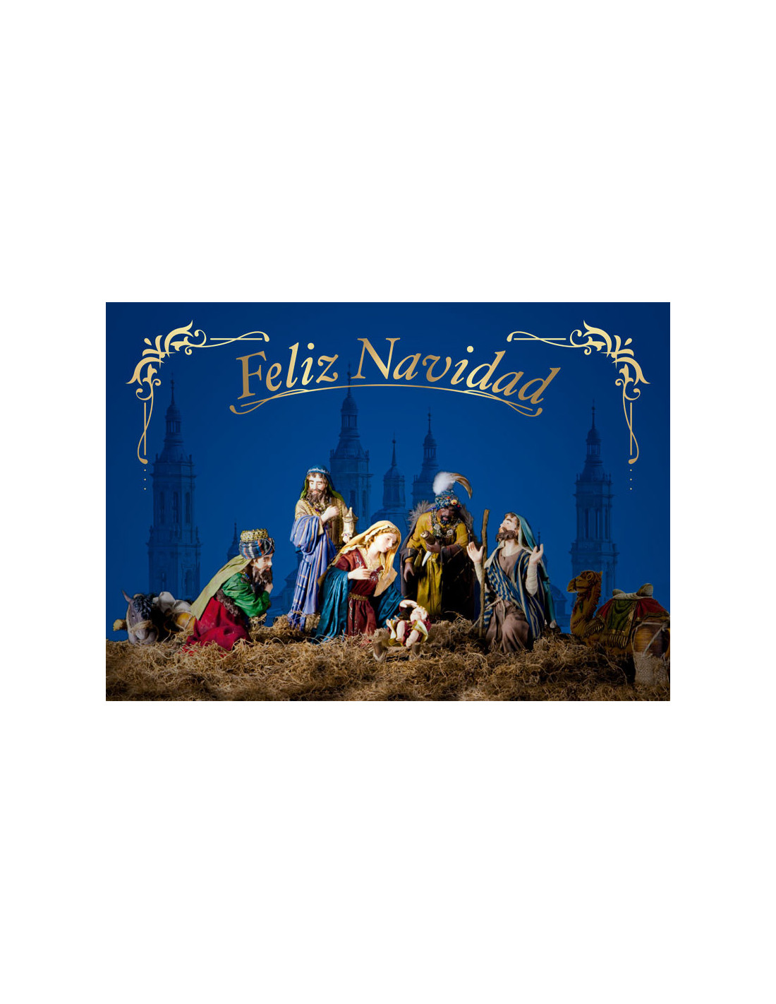 Preciosa Banderola Belén navideño con las torres del Pilar de fondo para felicitar la Navidad a tus vecinos y amigos.