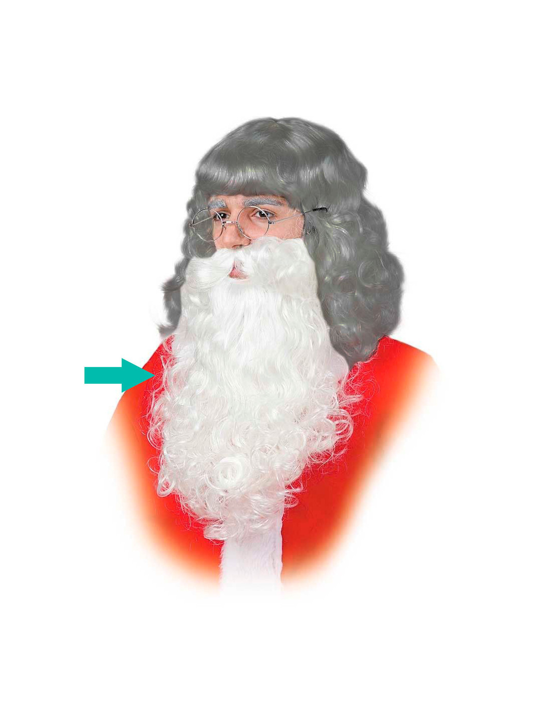 Dale el toque perfecto a tu noche Navideña y complementa tu disfraz de Santa Claus con esta barba de Papá Noel. Disponible en color blanco. Incluye completa barba de Papá Noel, de pelo ondulado, con gomas elásticas laterales para sujetarla sobre las orejas. No incluye peluca ni gafas. ¡Cárgate de regalos para los más pequeños! No incluye peluca.