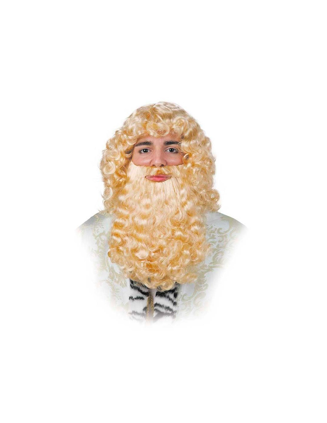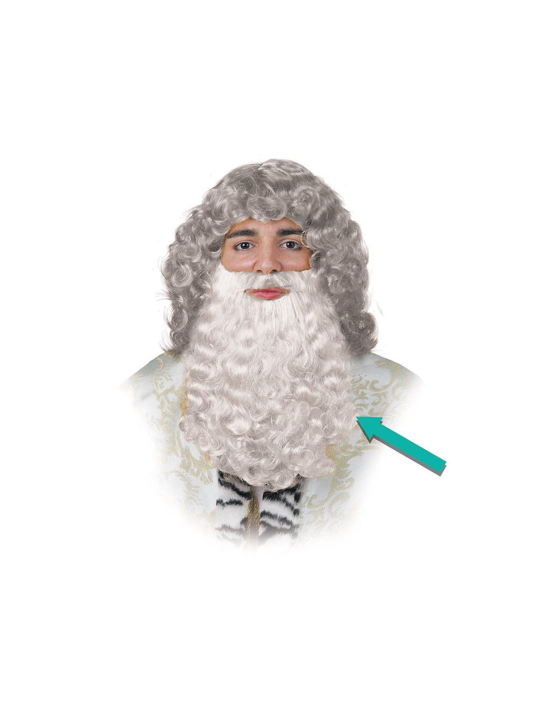 Barba con bigote ondulada con gomas en los laterales para sujetarla sobre las orejas para Rey Mago ó Papa Noel.