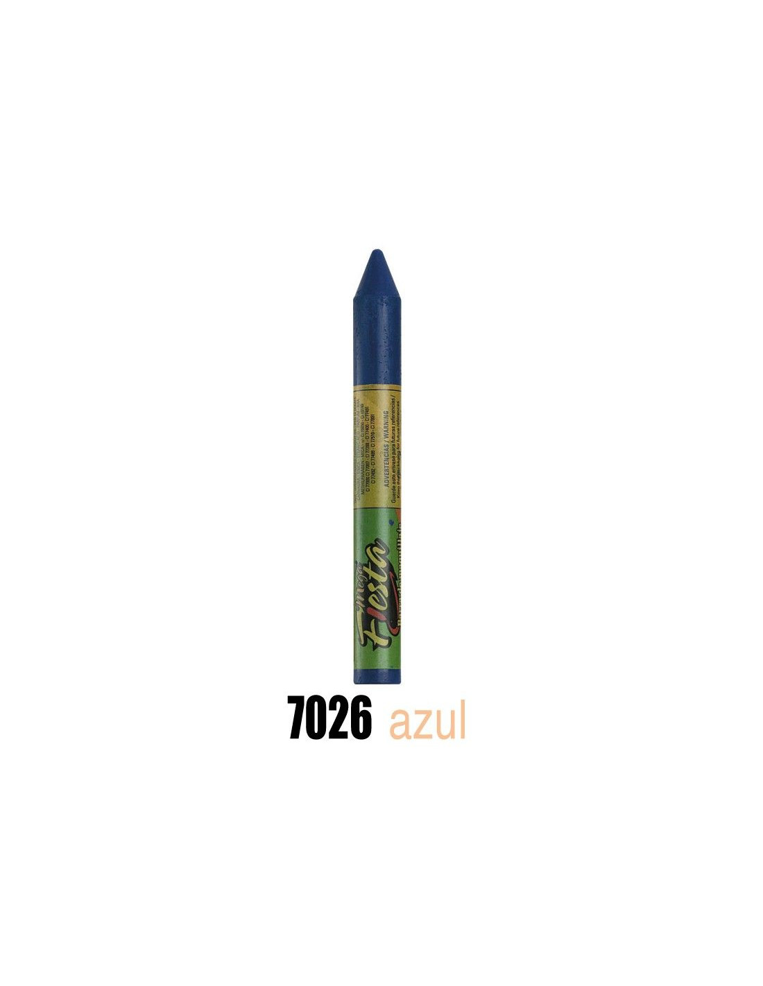 Barra de 15 gramos de maquillaje azul. Se aplica directamente sin crema base. Se limpia con un paño húmedo. Cumple todos los requisitos sanitarios pudiéndose aplicar a niños de guardería
