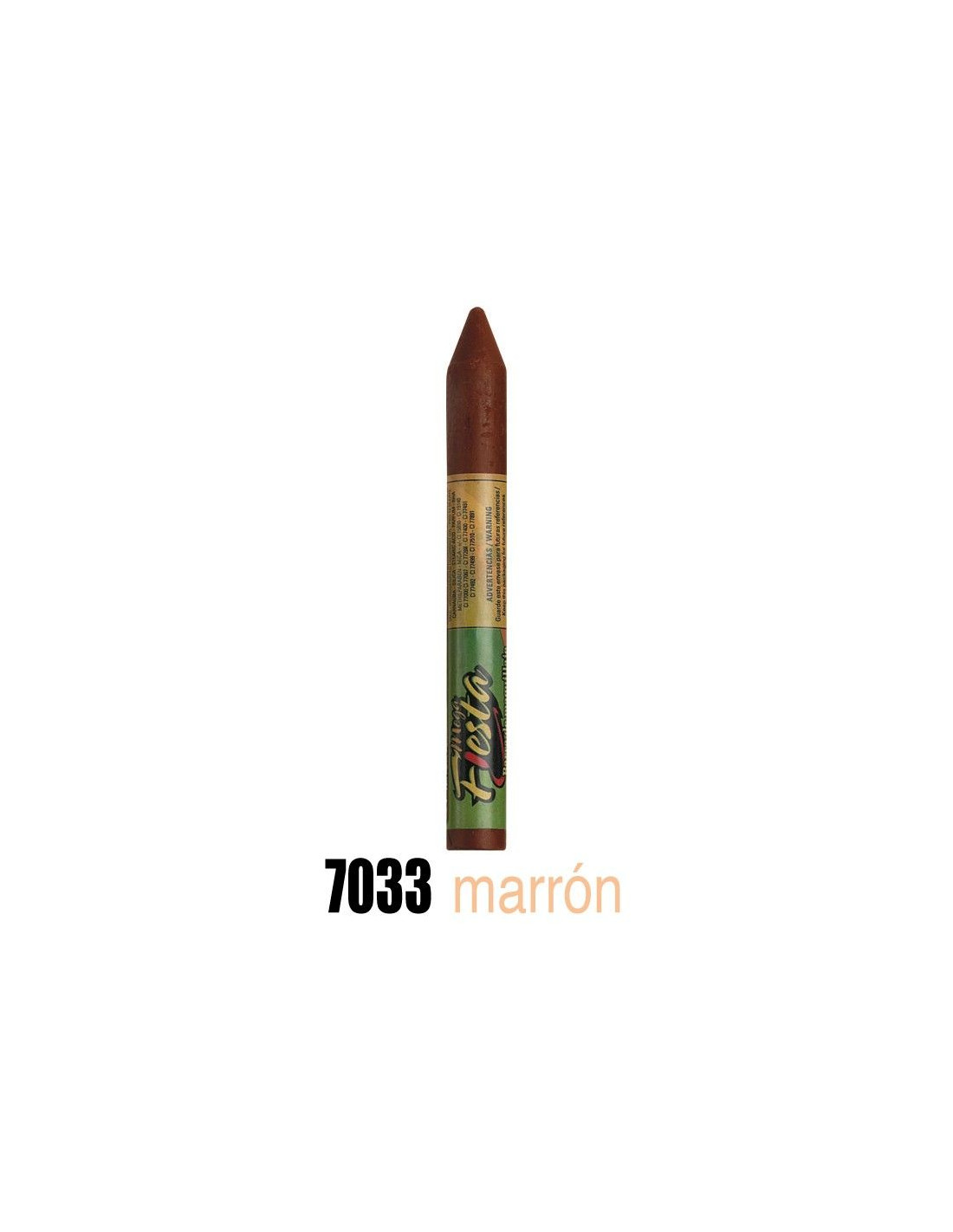 Barra de 15 gramos de maquillaje marrón. Se aplica directamente sin crema base. Se limpia con un paño húmedo. Cumple todos los requisitos sanitarios pudiéndose aplicar a niños de guardería