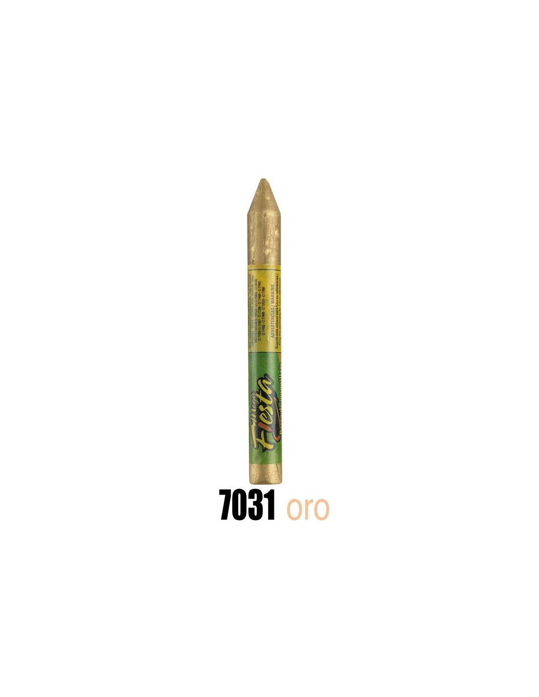 Barra de 15 gramos de maquillaje oro. Se aplica directamente sin crema base. Se limpia con un paño humedo. Cumple todos los requisitos sanitarios pudiendose aplicar a niños de guarderia