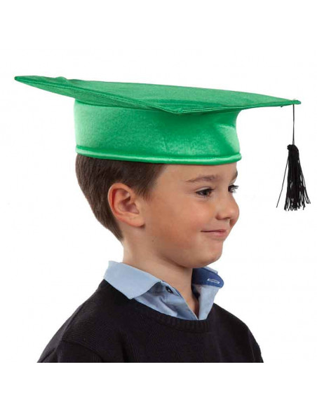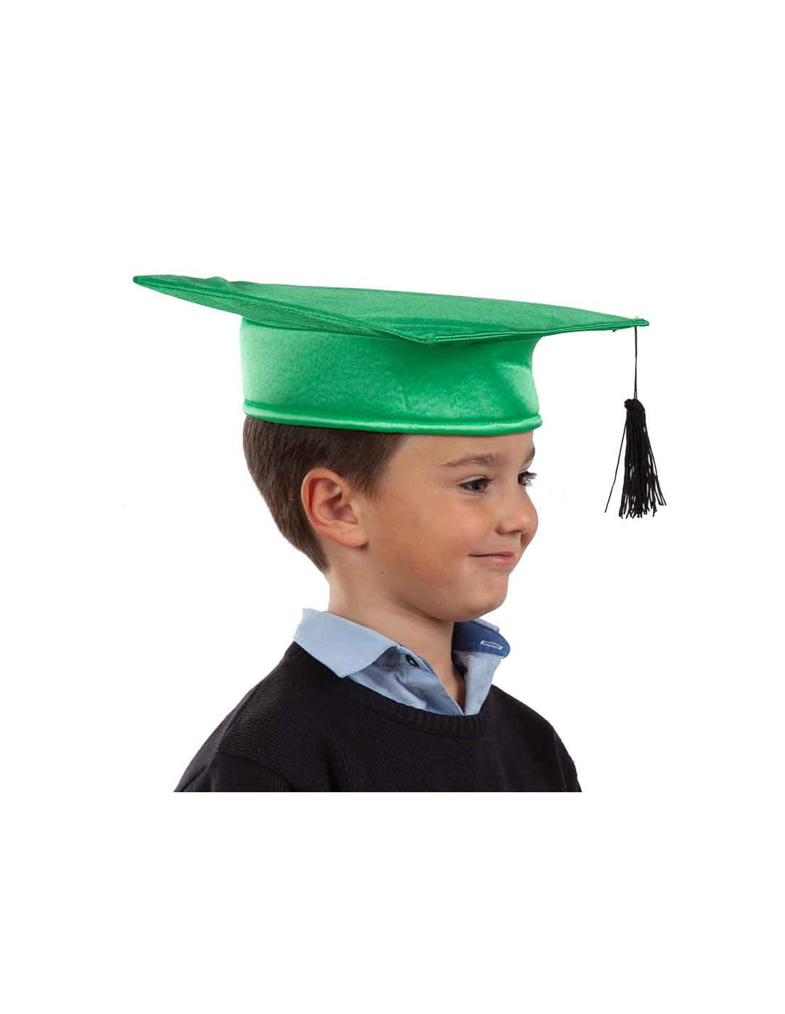 Birretes y gorros de graduado para niños y niñas en diversos colores para toda la clase. Haz de tu graduación un día único. Tiene unas medidas de 24x24cm y un diámetro para la cabeza de 18cm aproximadamente.