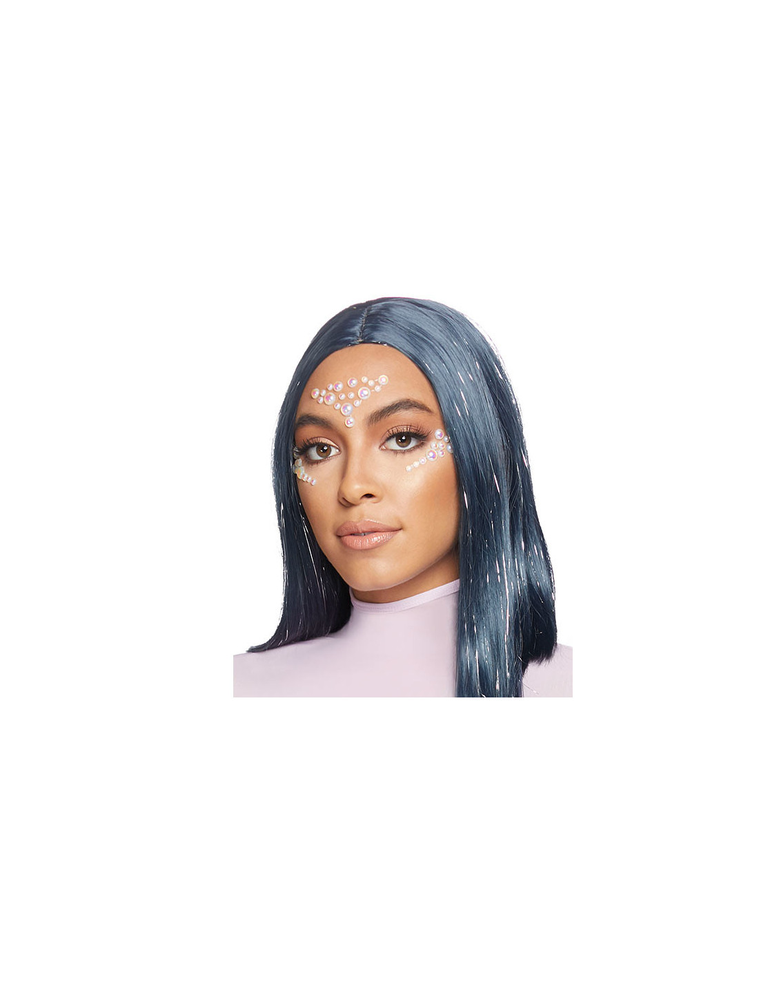 Bisutería facial Liri con la que darle un toque original a tu disfraz o tu look de fiesta. Estas piedras simulan unas perlas, por lo que es ideal para tu disfraz de sirenita.
