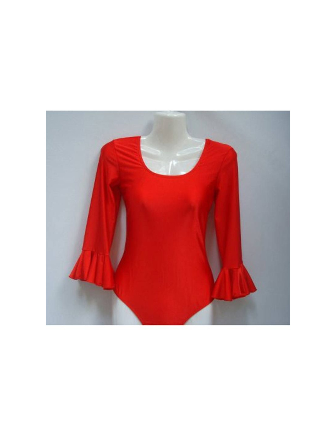 Body mujer media manga fabricado en licra para una mayor adaptación al cuerpo. Tiene unas mangas de 3/4 con volante al final.