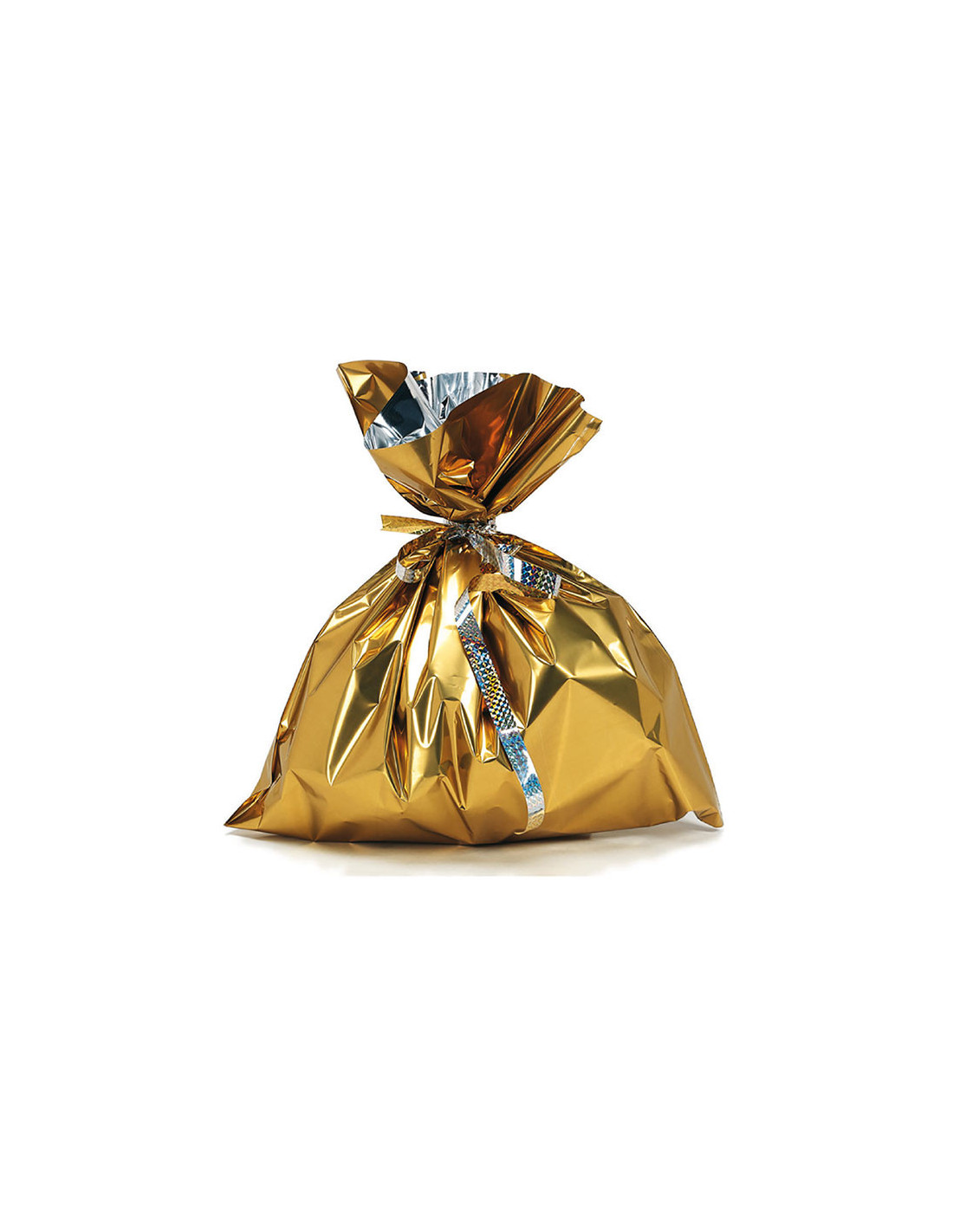 Bolsa de cotillón vacía metalizada que mide 40x55cm aproximadamente.