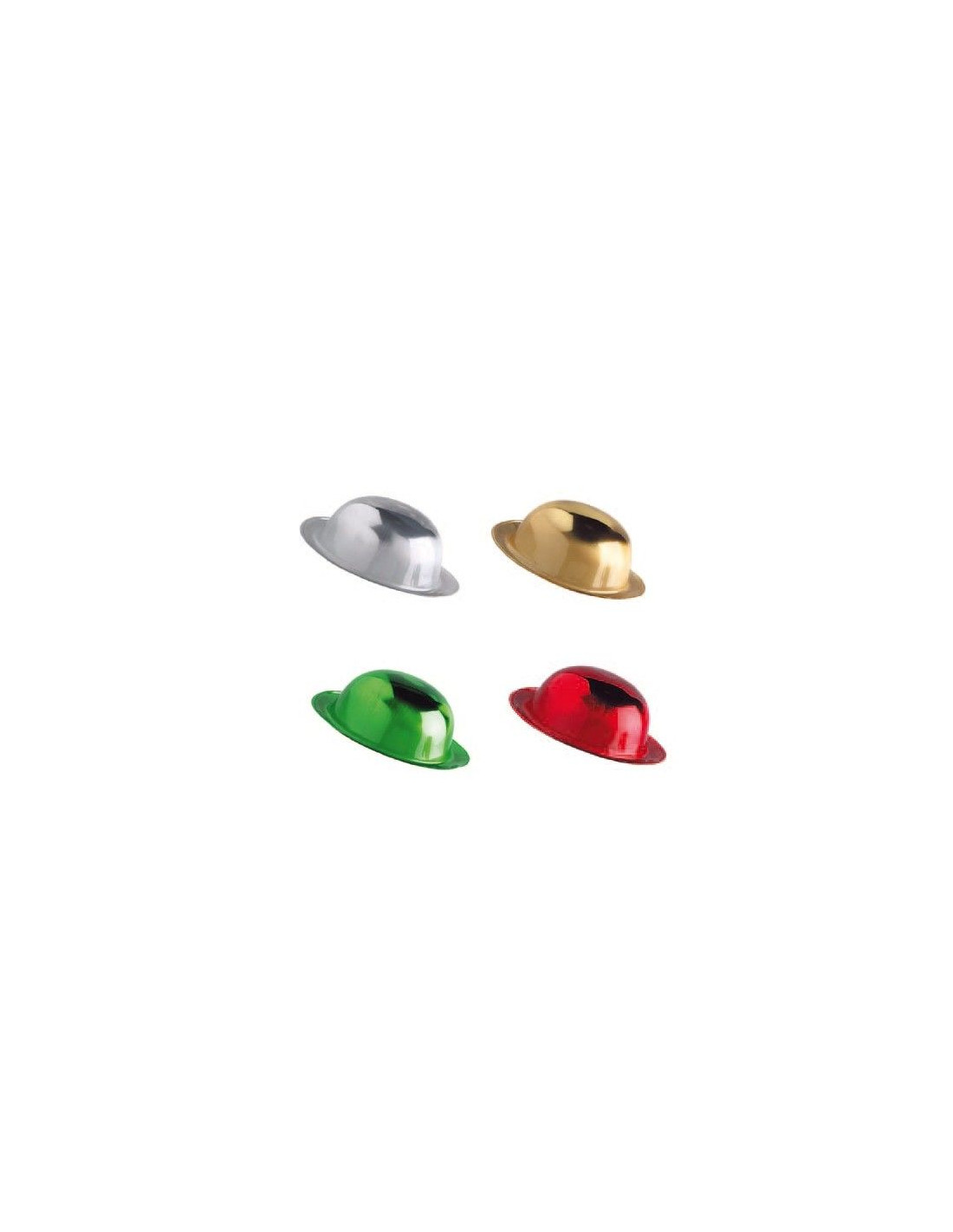 Bombín metalizado barato en diferentes colores. Fabricado en plástico. Disponible en rojo, verde, oro y plata claro.