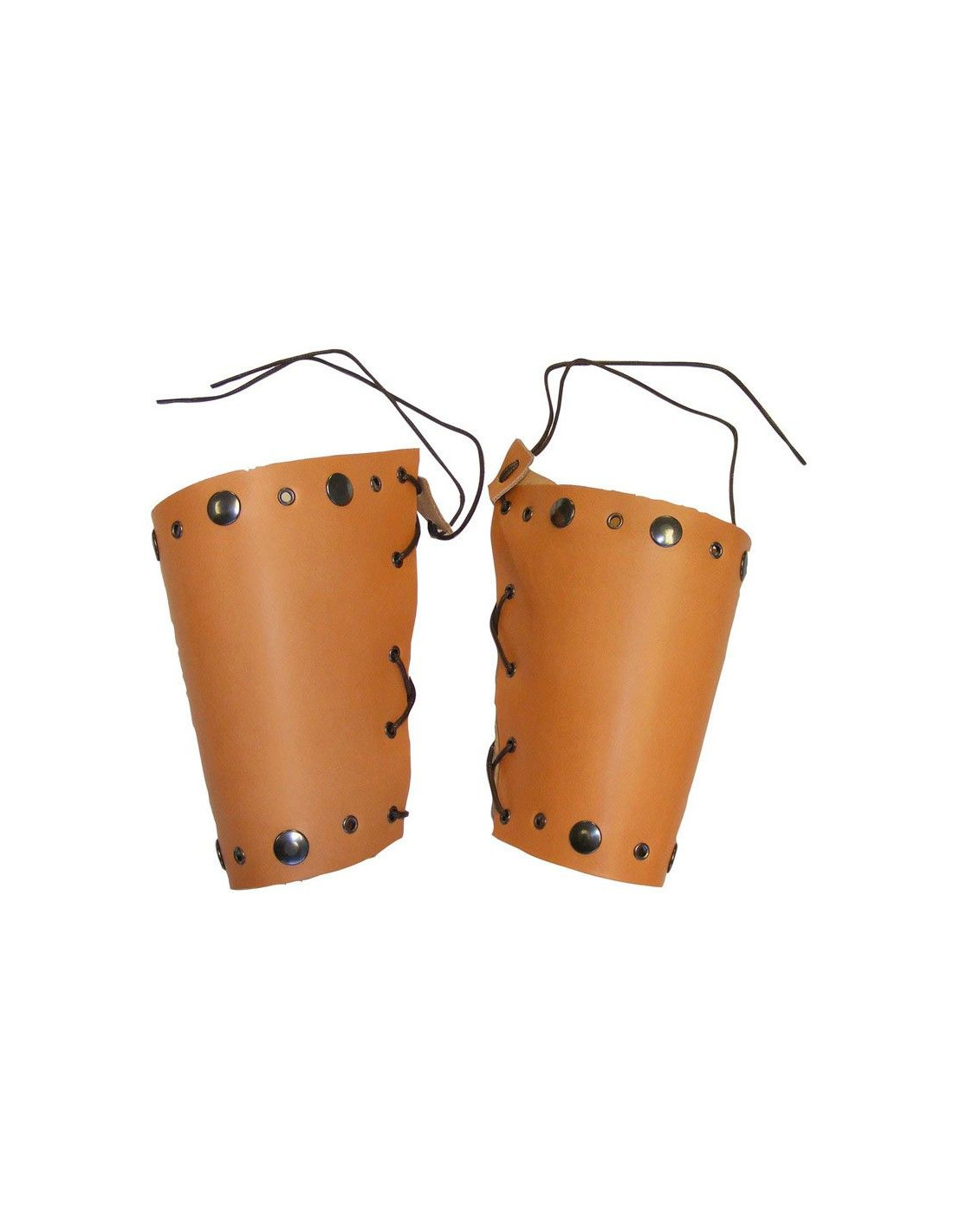 Muñequeras de cuero muy practico y de gran calidad para utilizar con trajes medievales o para los mercadillos tematicos decorada con ojetes y remaches de metal.