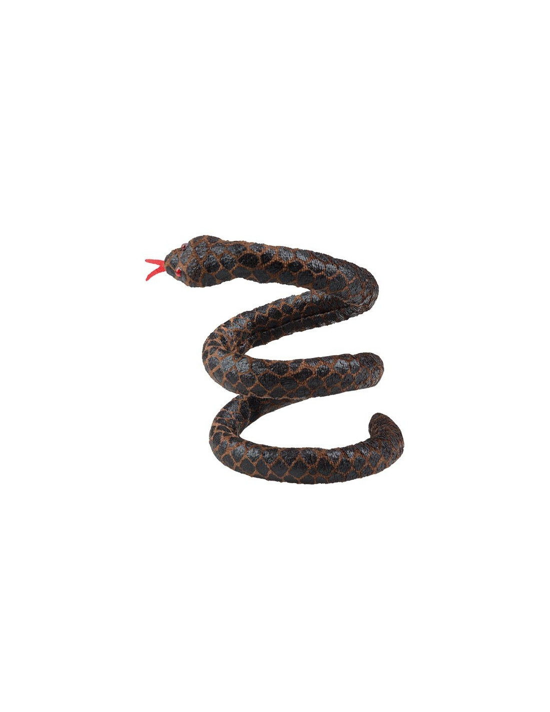 Brazalete de serpiente en tejido marrón oscuro y detalle de la lengua. En su interior tiene un alambre con el que podrás adaptar la serpiente a tu brazo. Mide 65cm de largo aproximadamente.