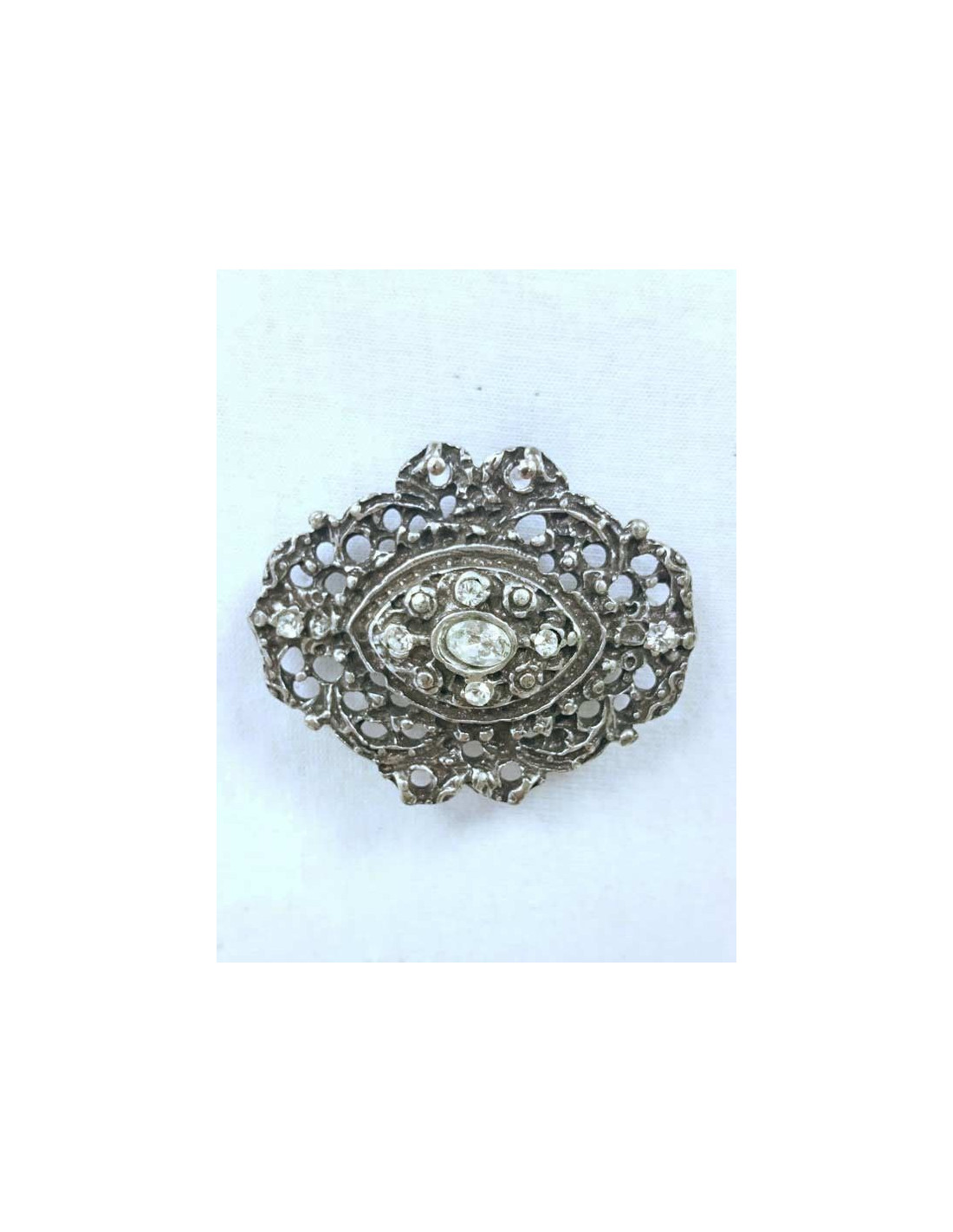 Broche de baturra en color plata vieja con brillantes. Tiene unas medidas de 3,5x4cm.