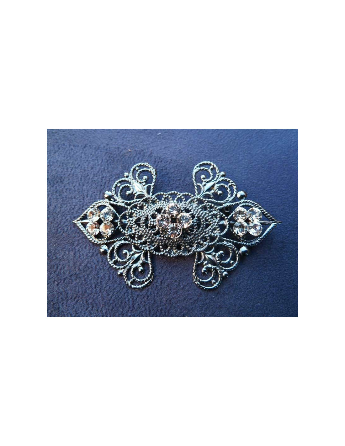 Broche para traje regional en color plata viejo. Tiene unas medidas de 4,5x7cm.