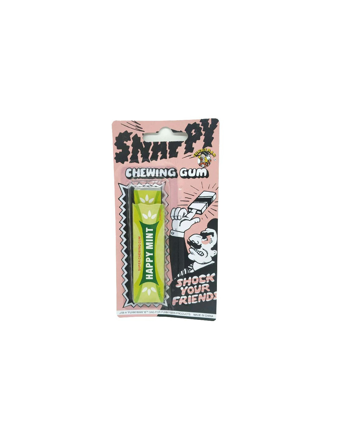 Contiene una broma de chicle trampa, que al tirar de él se acciona como si fuera una trampa para ratones dejando el dedo "semiatrapado".