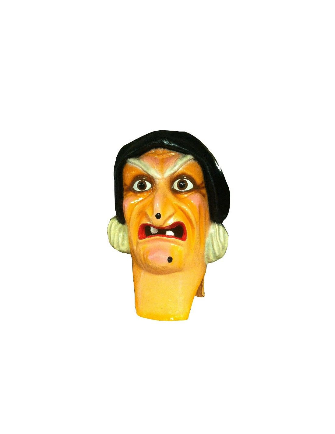 Cabezudo adulto Bruja para fiestas patronales, fiestas de pueblos, Carnavales y cualquier celebración. Incluye un cabezudo adulto Bruja, fabricado en cartón-piedra para favorecer la transpiración del portador, y con unas dimensiones de 70cm de altura (aunque está considerado de tamaño para adulto, puede utilizarse a partir de los 12-13 años dependiendo del tamaño de la cabeza).