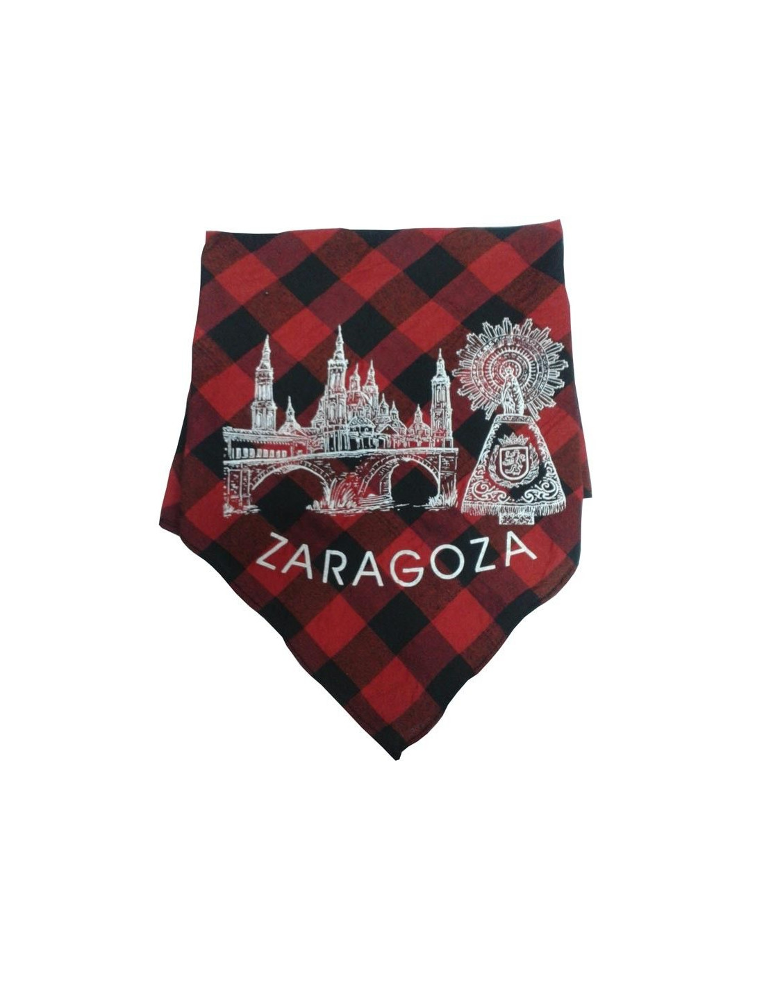 Pañuelo de cuadros con forma triangular de 70x70x1m, con la imagen del Pilar estampada.