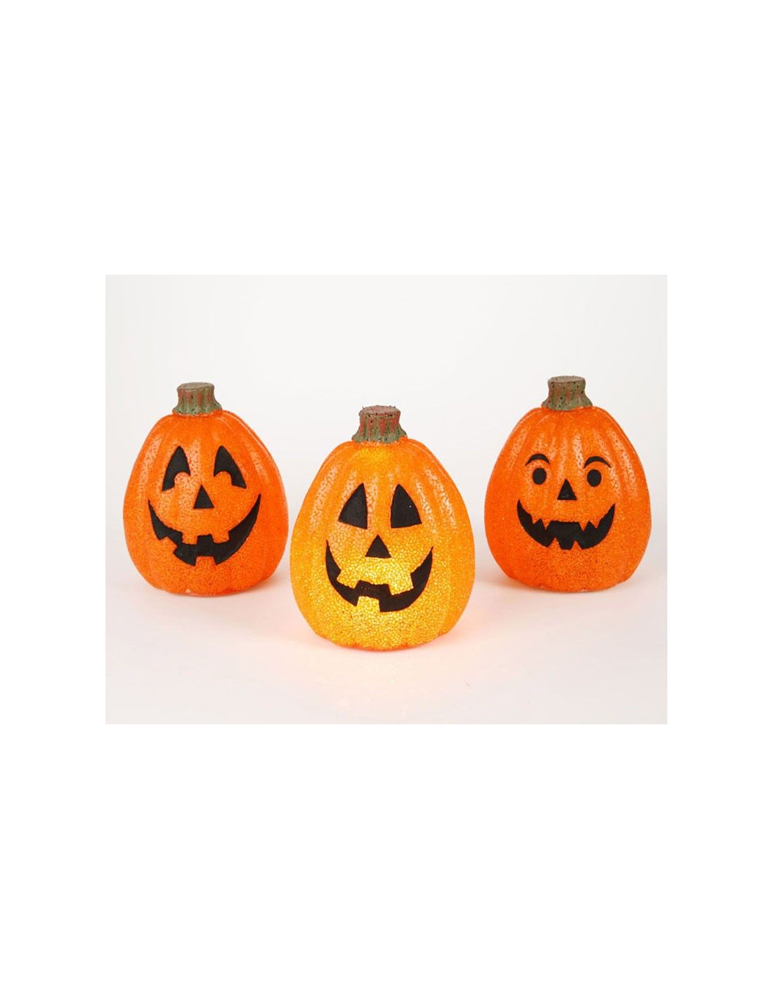 Calabaza con luces en su interior, funciona con pilas. Medidas 23x17cm. No incluye las pilas.