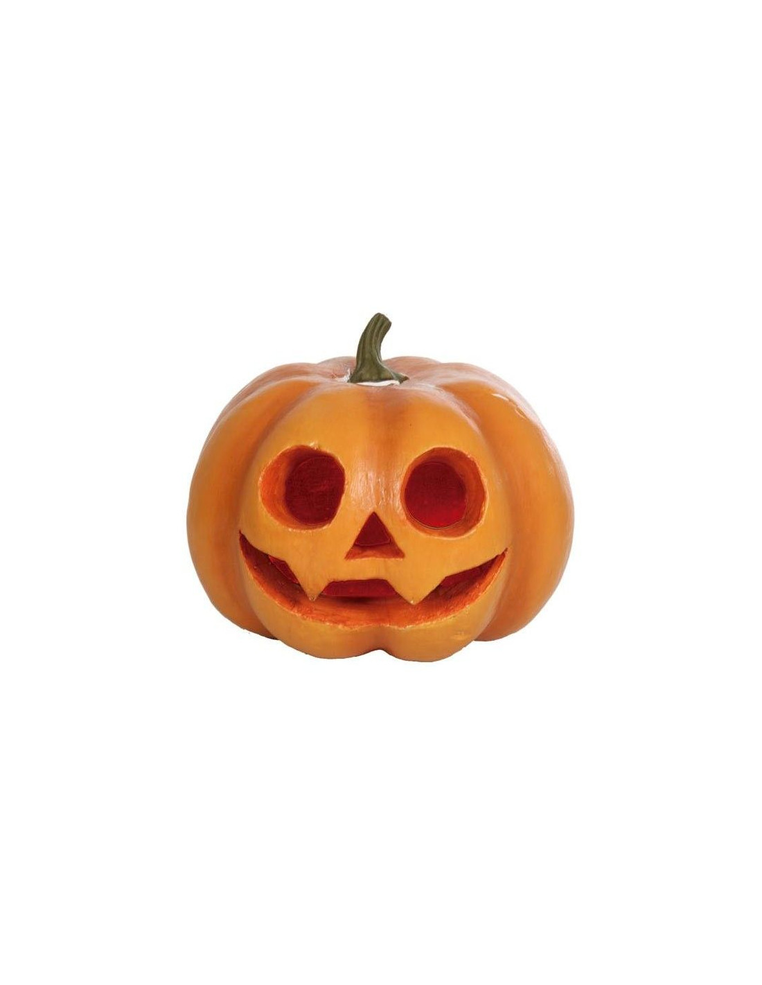 Calabaza Halloween con luz en su interior. Es de corcho y tiene unas medidas de 20x20x19cm. Funciona con pila.